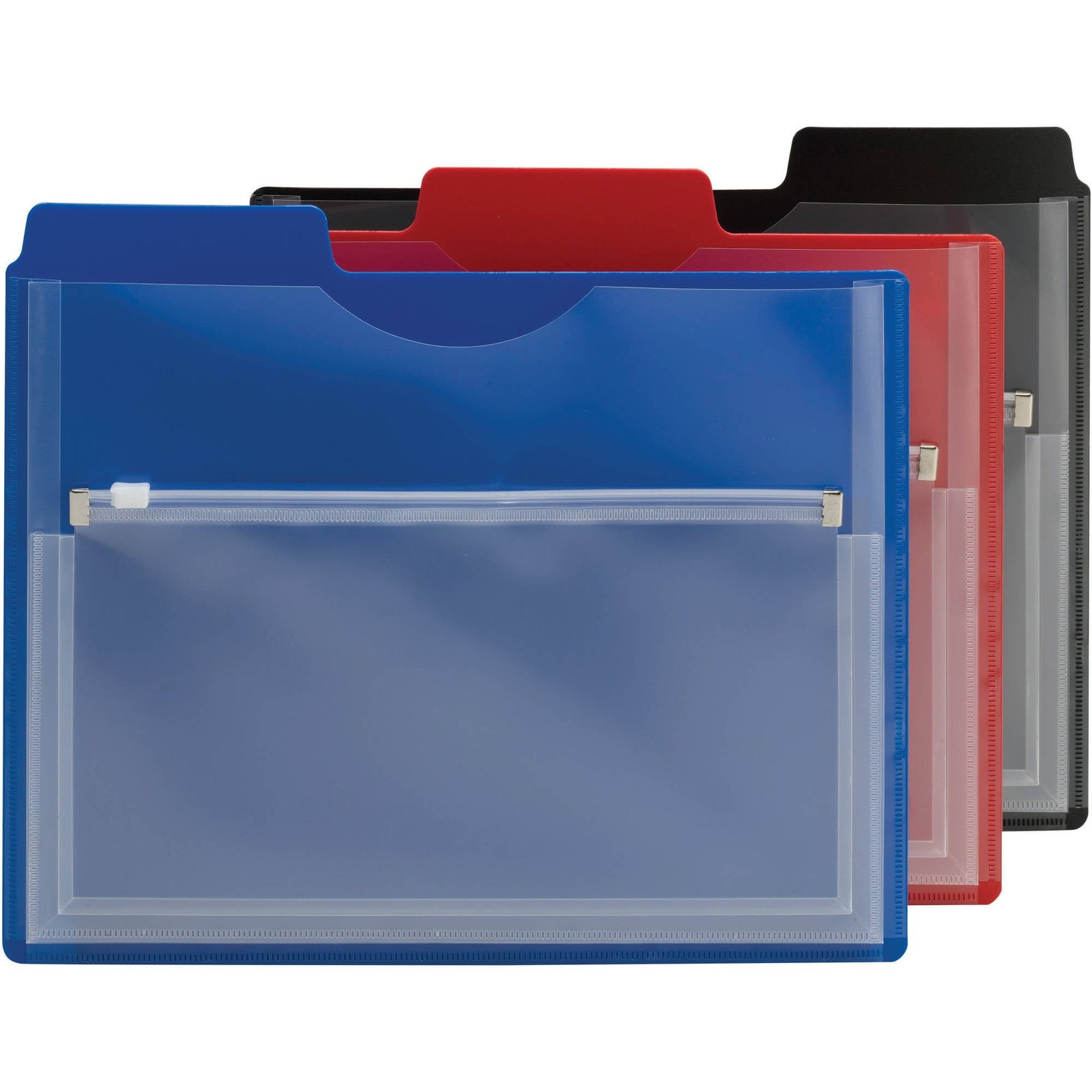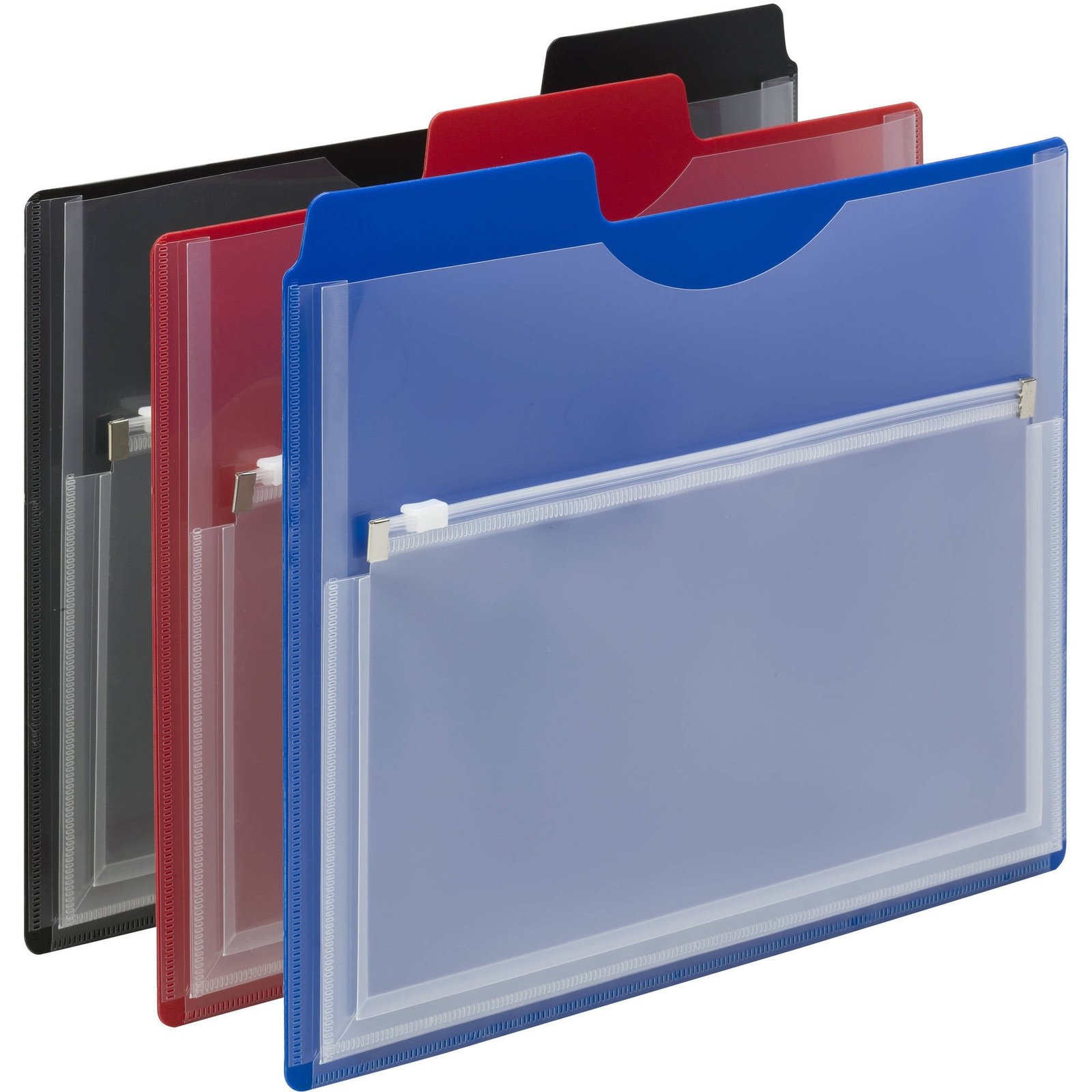 Manage active projects safely and easily. Durable and waterproof polypropylene stock resists tears and moisture, keeping important documents and incidentals safe from spills. The zip pouch on the front is ideal for small items, such as notes, flash drives, business cards and keys. Closed on three sides for added security and pocket expands to 1/2″ for added capacity.