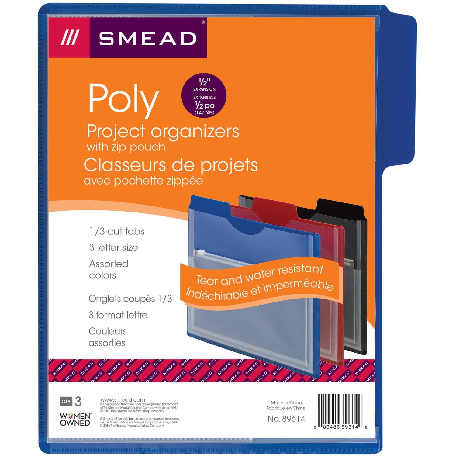 Smead Project Organizer with Zip Pouch, 1/3- Cut Tab,