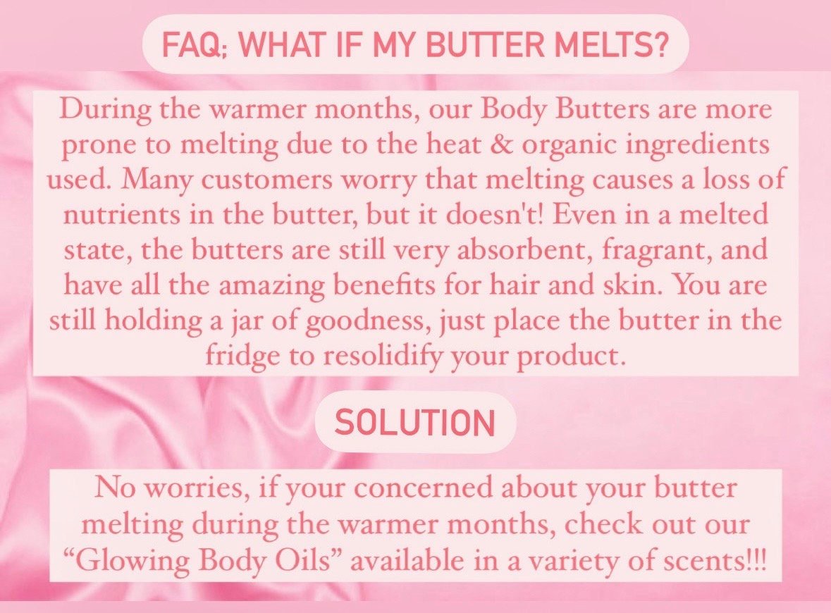 Thank you soo much for stopping by, you are very much appreciated!☺️Everyone has been talking about our body butters, they truly love this stuff & I’m sure you will too! Be sure to check out our shop for other premium products such as body scrubs, body oils, massage candles, serums, soap, bath salts, etc so you can try something new and find your next favorite item.