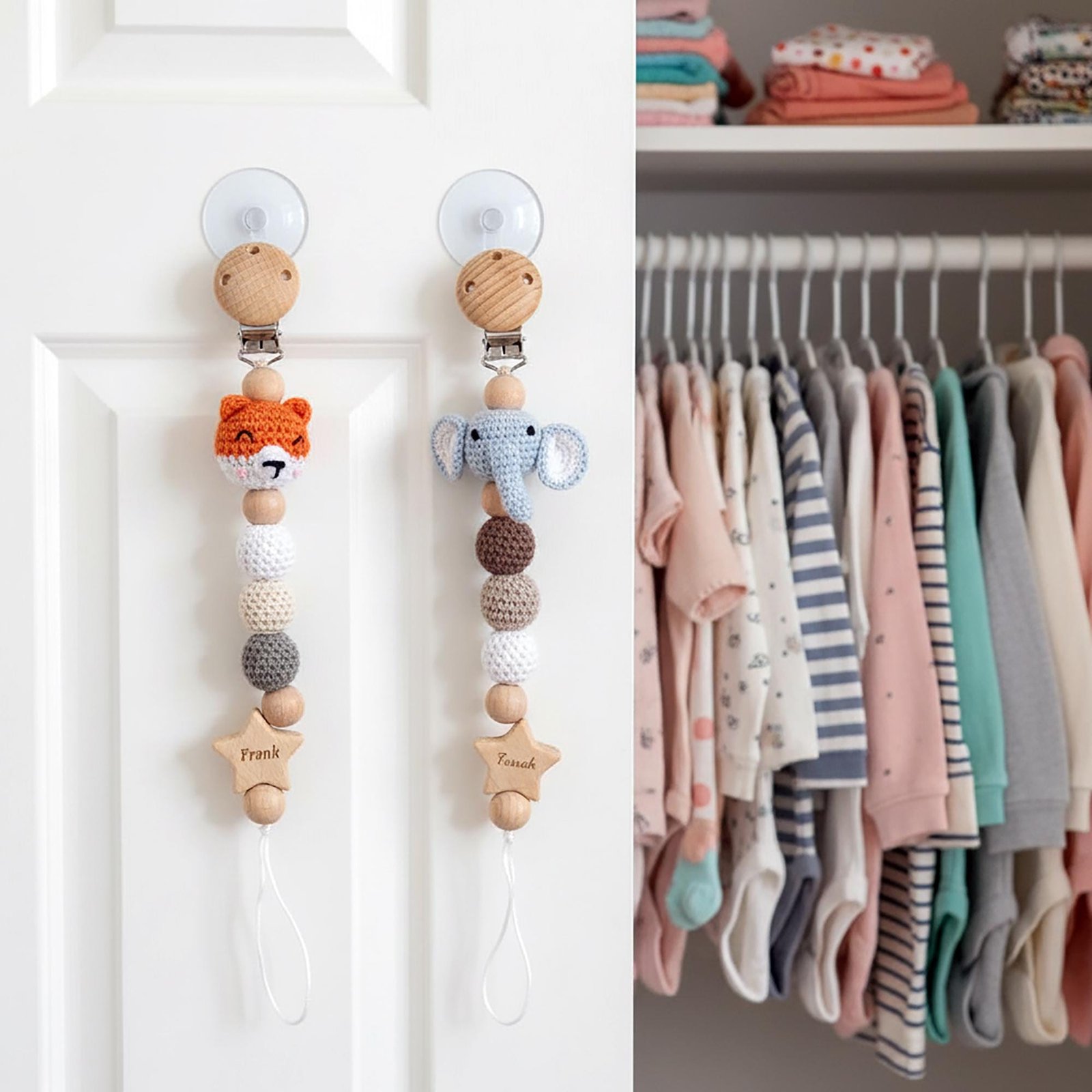 Durable Wooden Clip: Secures pacifiers and small toys without slipping