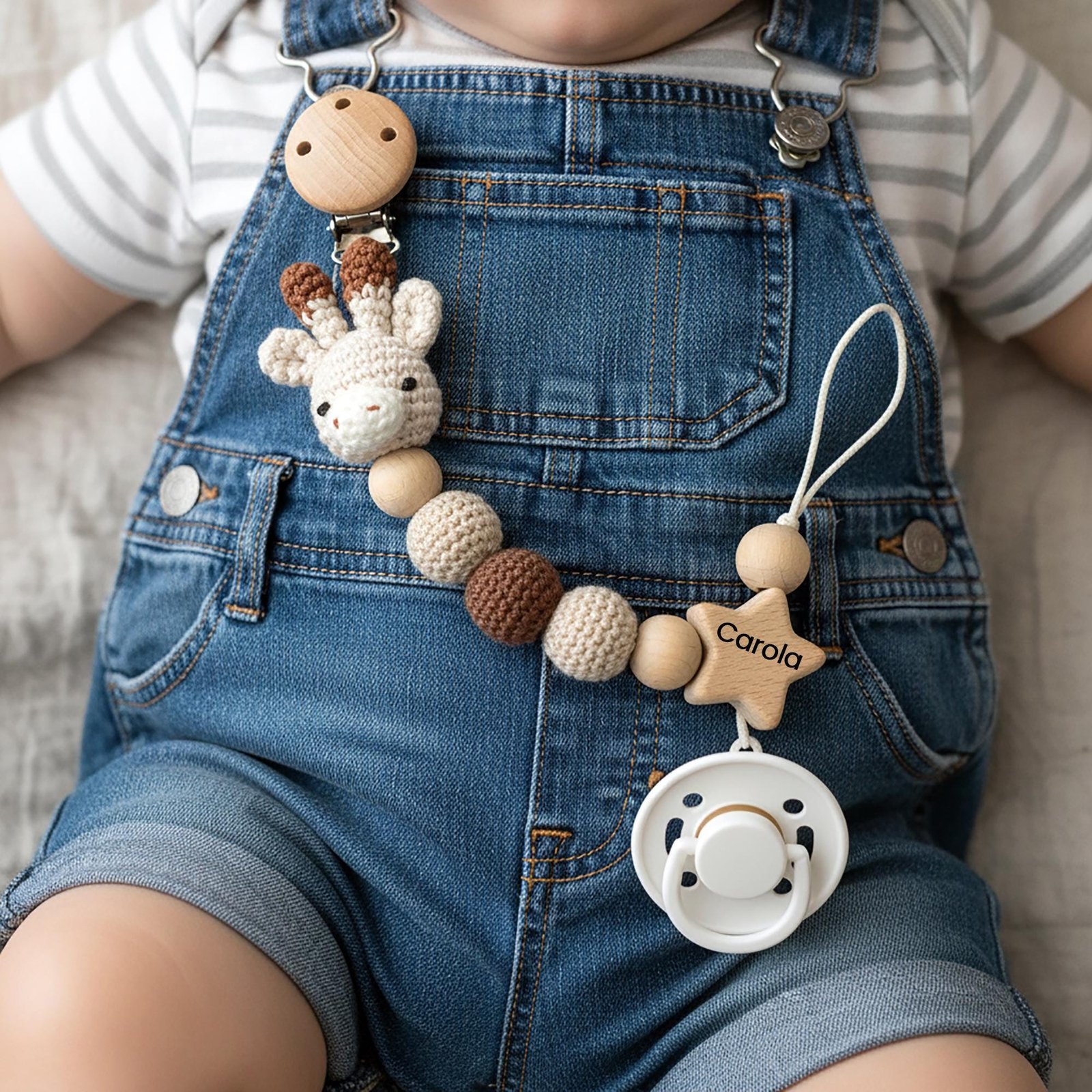 Make every baby’s day more adorable and practical with this handmade crochet animal pacifier clip. Designed to keep pacifiers or small toys close at hand, this custom name pacifier holder is both functional and charming. Perfect for newborns, infants, and toddlers, it’s a gift that parents and babies will love.