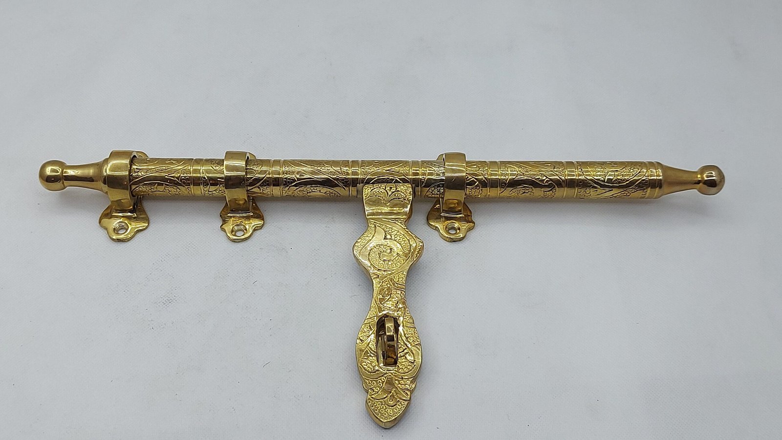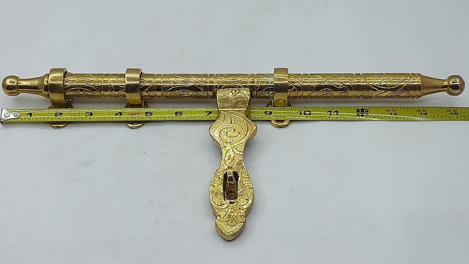 Solid Brass Sliding Door Latch 15’’ – Handmade Etched Door Bolt