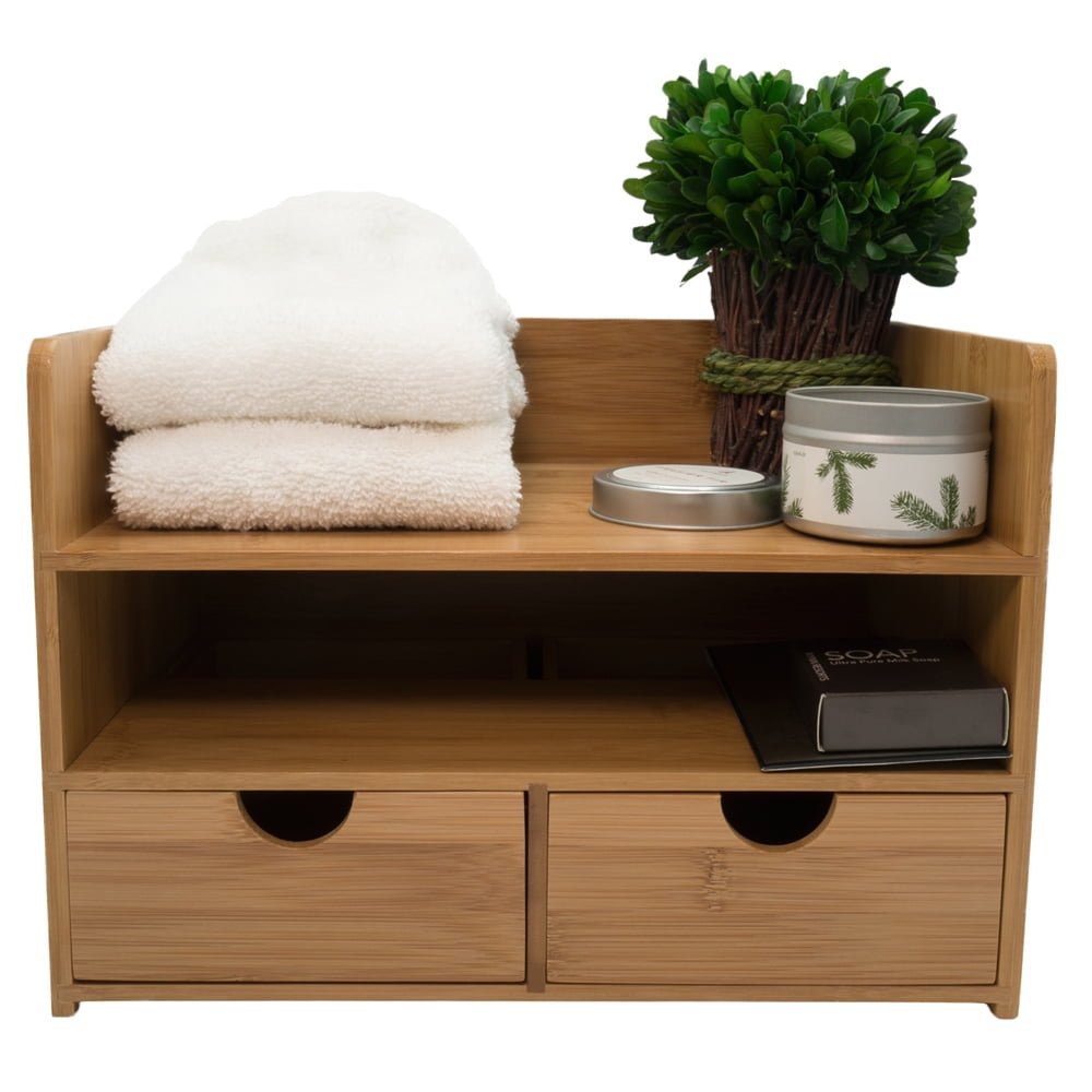 Sorbus 3-Tier Bamboo Shelf Organizer for Desk with Drawers – Mini Desk Storage for Office Supplies, Toiletries, Crafts, etc – Great for Desk, Vanity, Tabletop in Home or Office