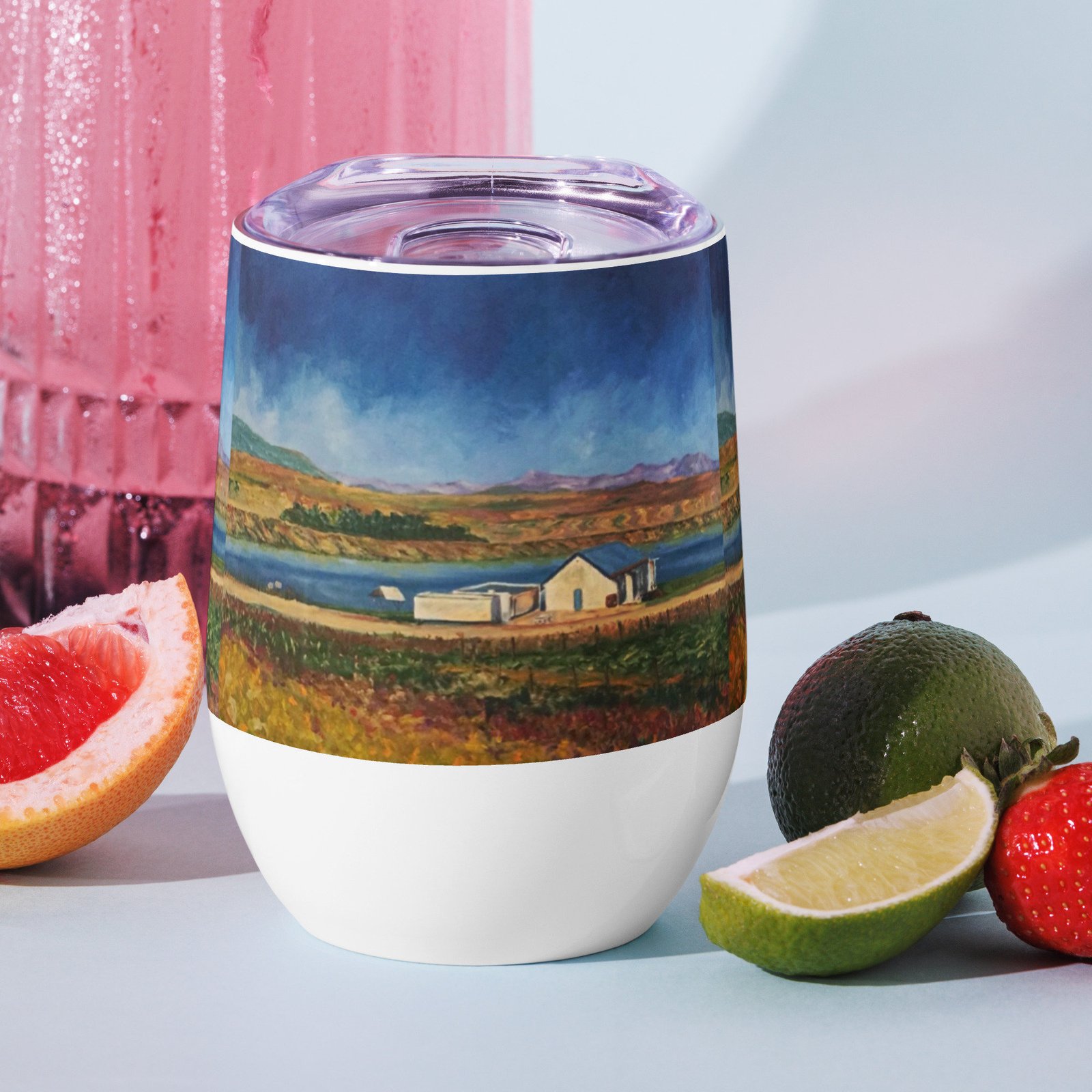 Be the first to review “South African Wine Farm, Wine tumbler with Original Art by Althia Prinsloo”