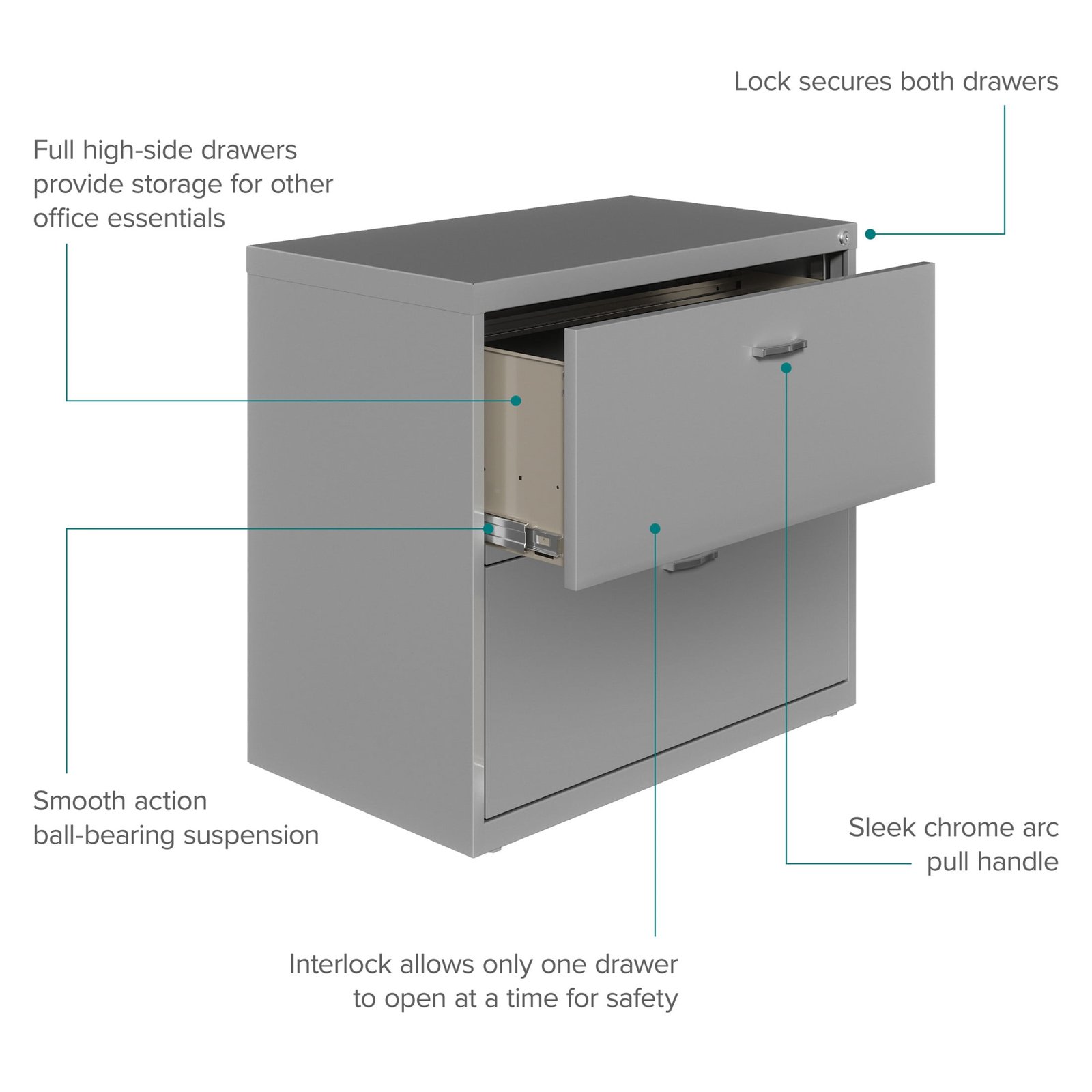 - Space Solutions 30 inch Wide 2 Drawer Lateral File Cabinet for Home or Office, Arctic Silver