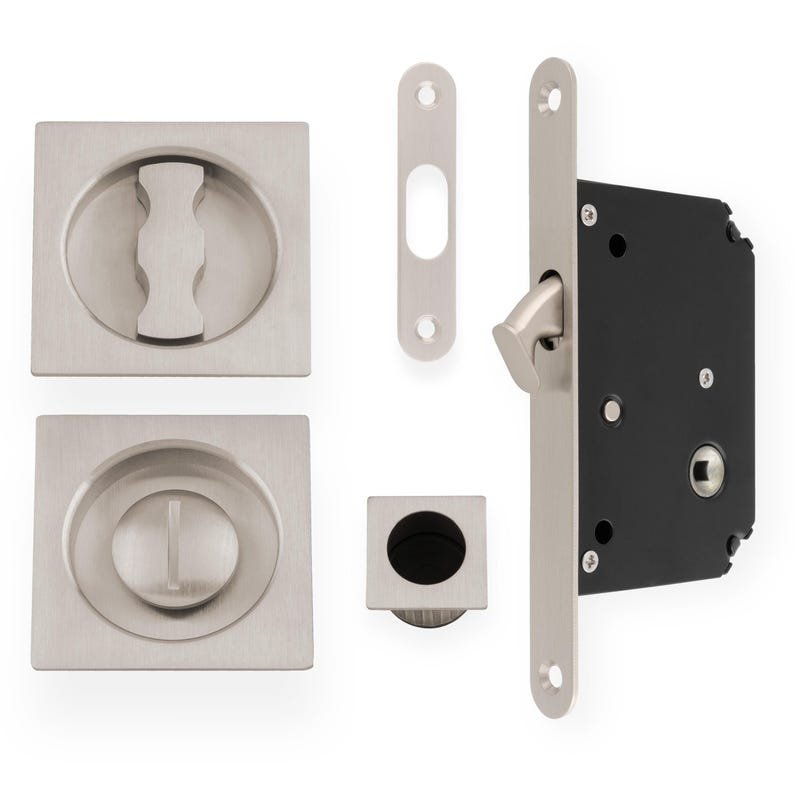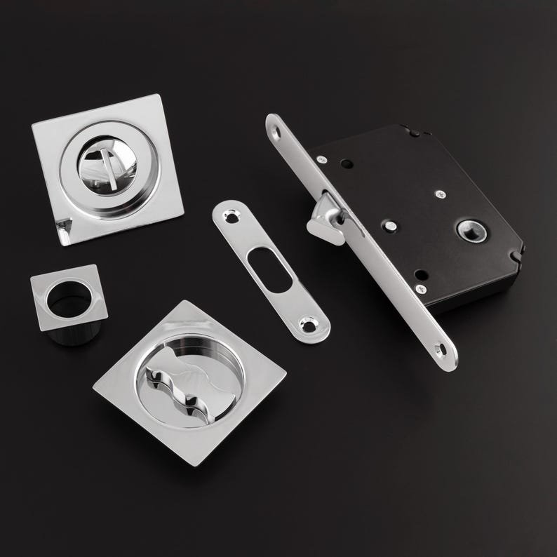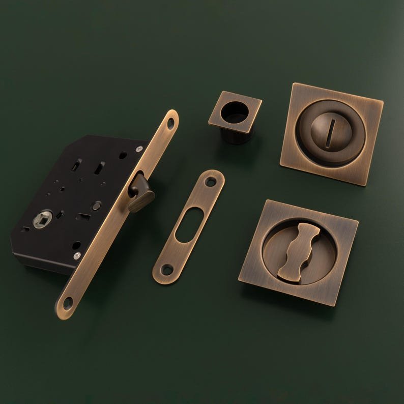 Square Brass Bathroom Lock for sliding, Pocket door, complete set including lock, thumb turn , finger edge pull , flush privacy lock