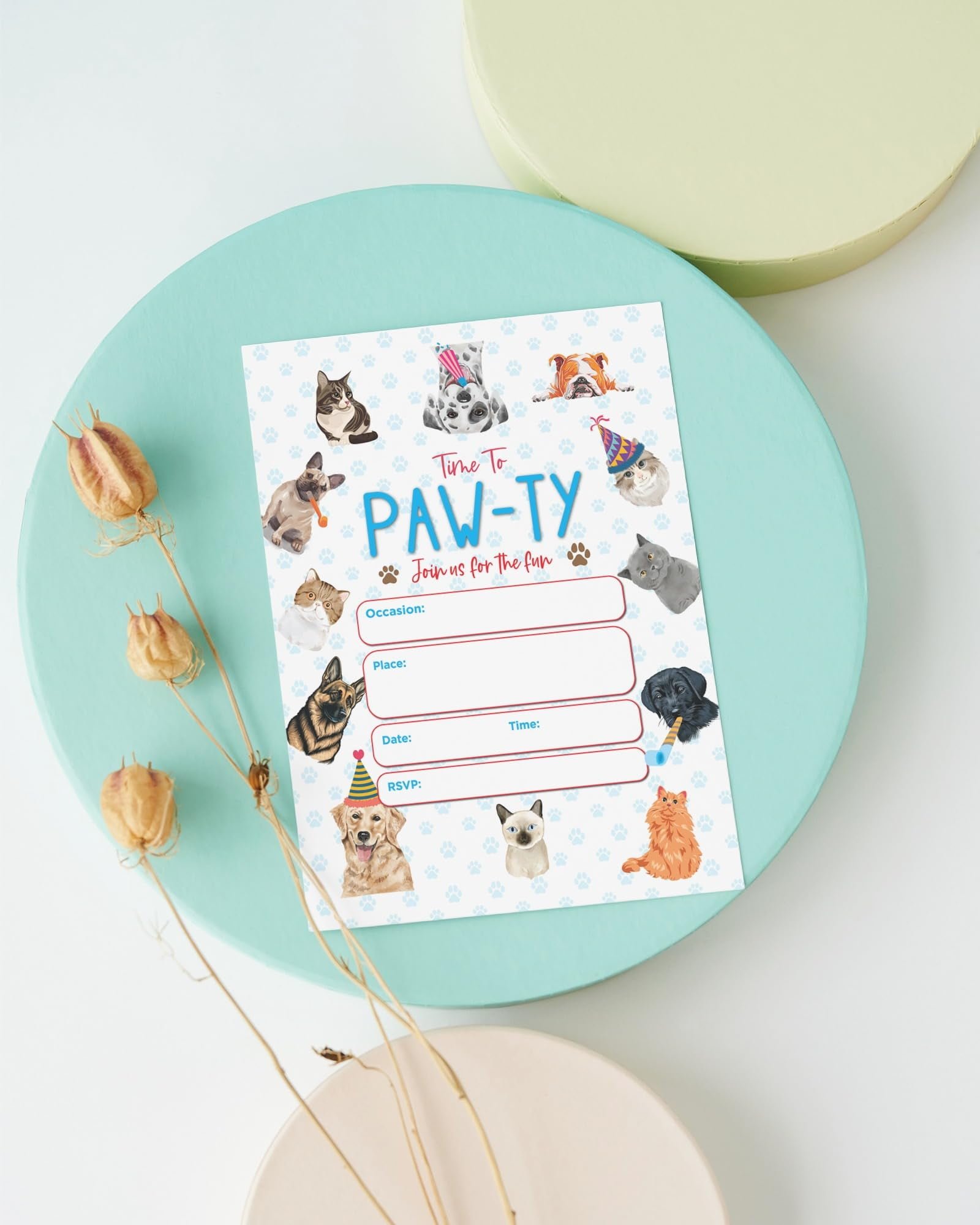 - Bulk set of 25 dog party invites with envelopes. Compared to others, ours are high quality paper, large 5×7 and come with envelopes.