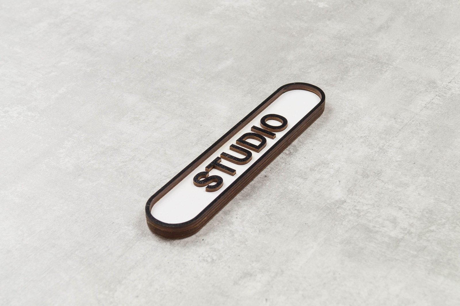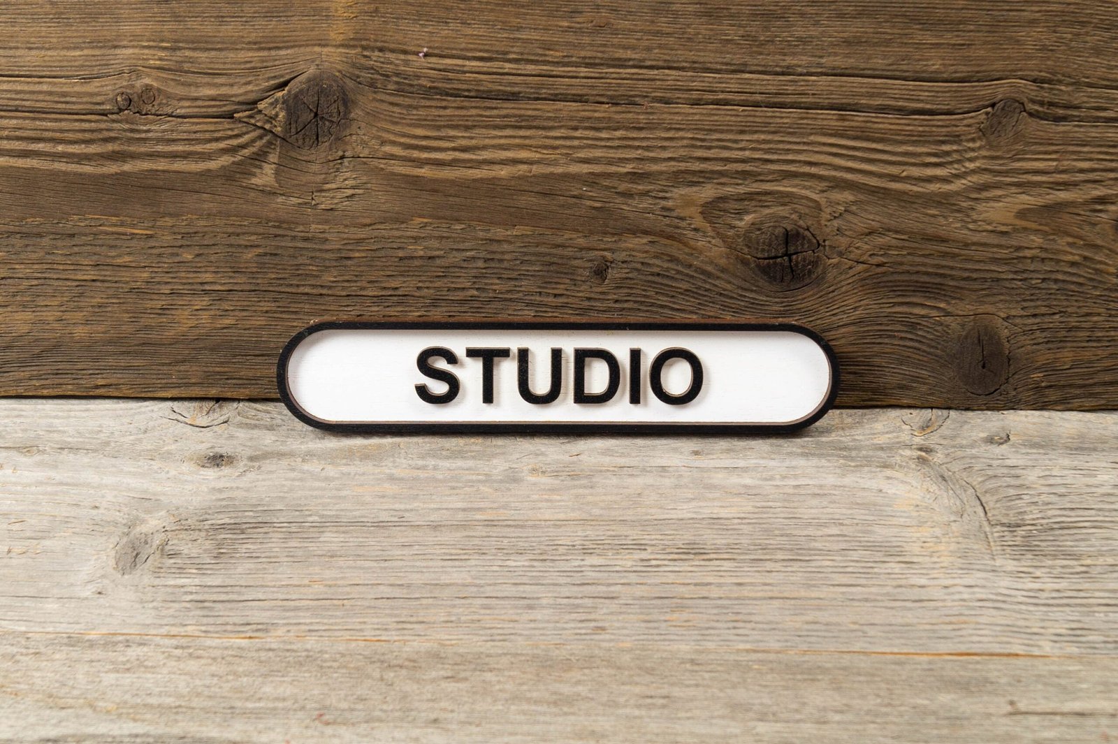 Studio Wooden Door Sign. Classic indoor signage with raised lettering. Tactile font.
