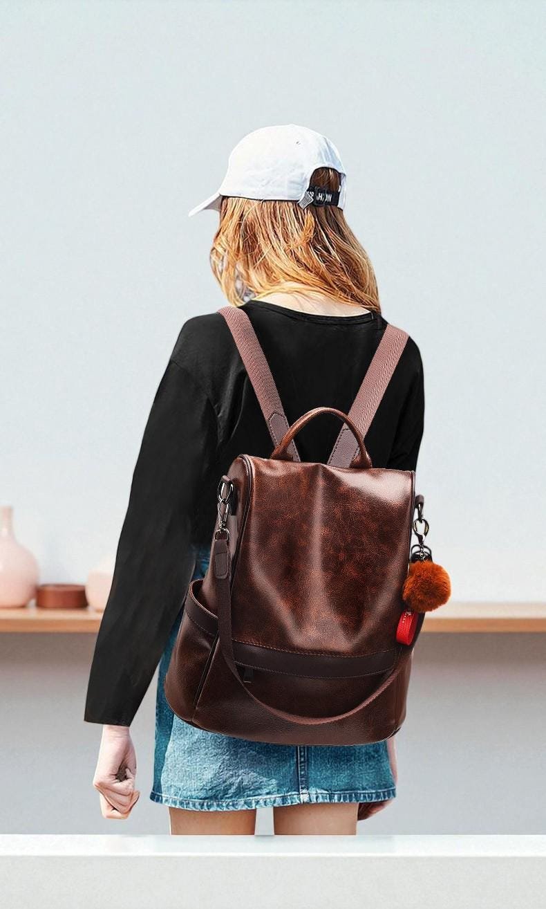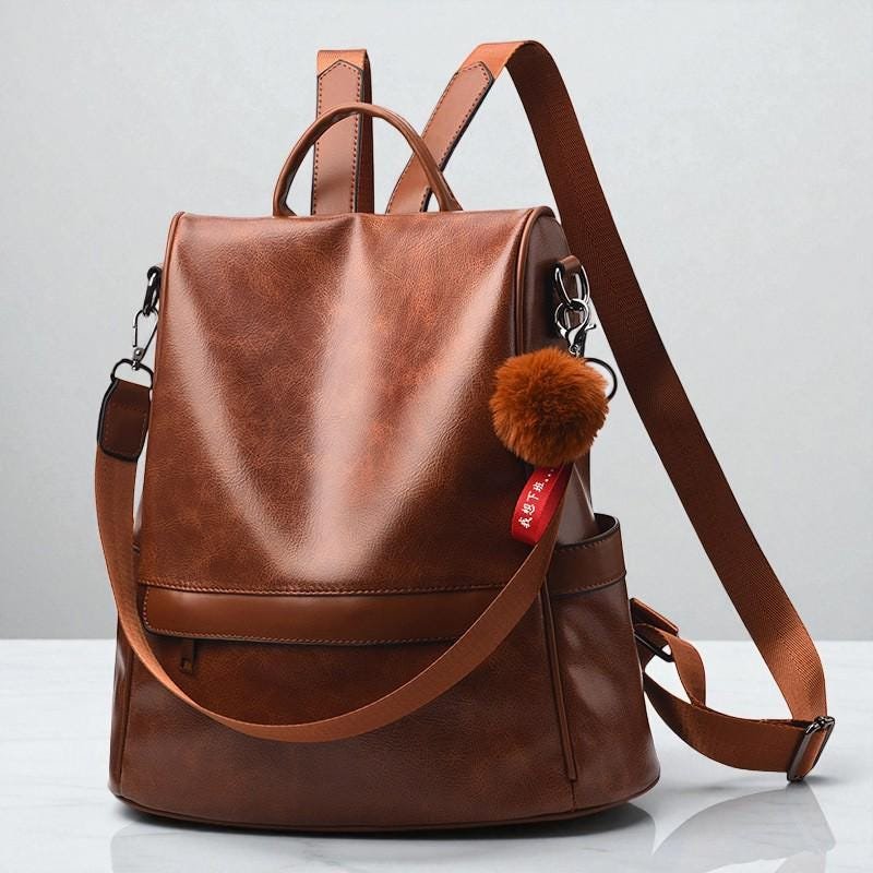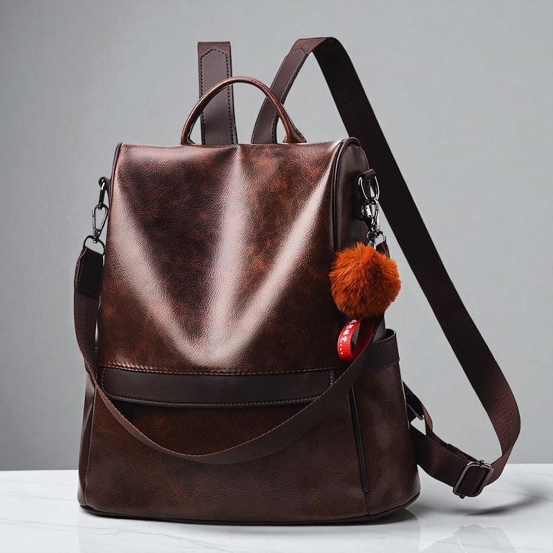 Study Bag Woman Leather Backpack, Large Capacity Dual-Use Shoulder & Crossbody Bag, Minimalist Casual Travel Bag, Everyday Women Backpack