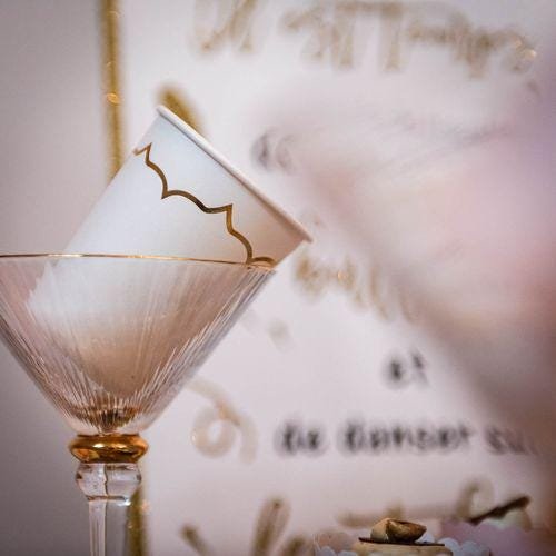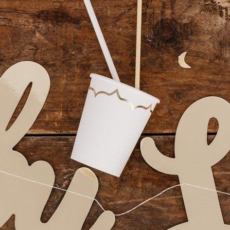 These elegant paper cups will add a touch of style to your party. The cups have a stunning white colour with a metallic gold design making them the perfect addition for your fancy dinner, communion or birthday party.