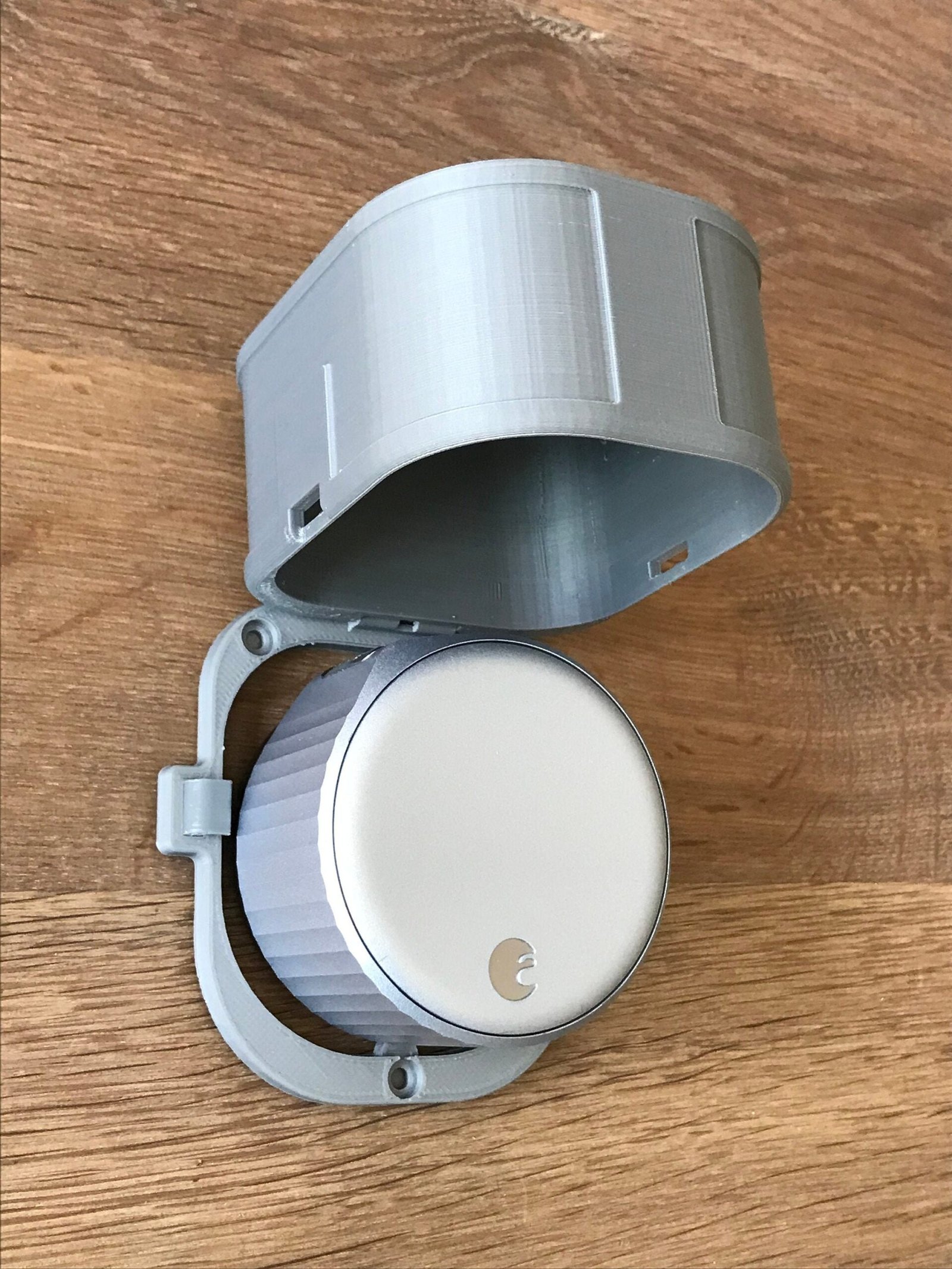 Protective housing / cover for your August Wi-Fi Smart Lock 4th Gen or August Smart Lock PRO 3rd Gen. Made of a durable plastic for robust and long-lasting protection. Protects your August Smart Lock from sun, rain and wind. The housing can be installed simply over your existing August Smart Lock installation. Mounts with 2 or 3 screws. Made in USA. August Smart Lock not included.