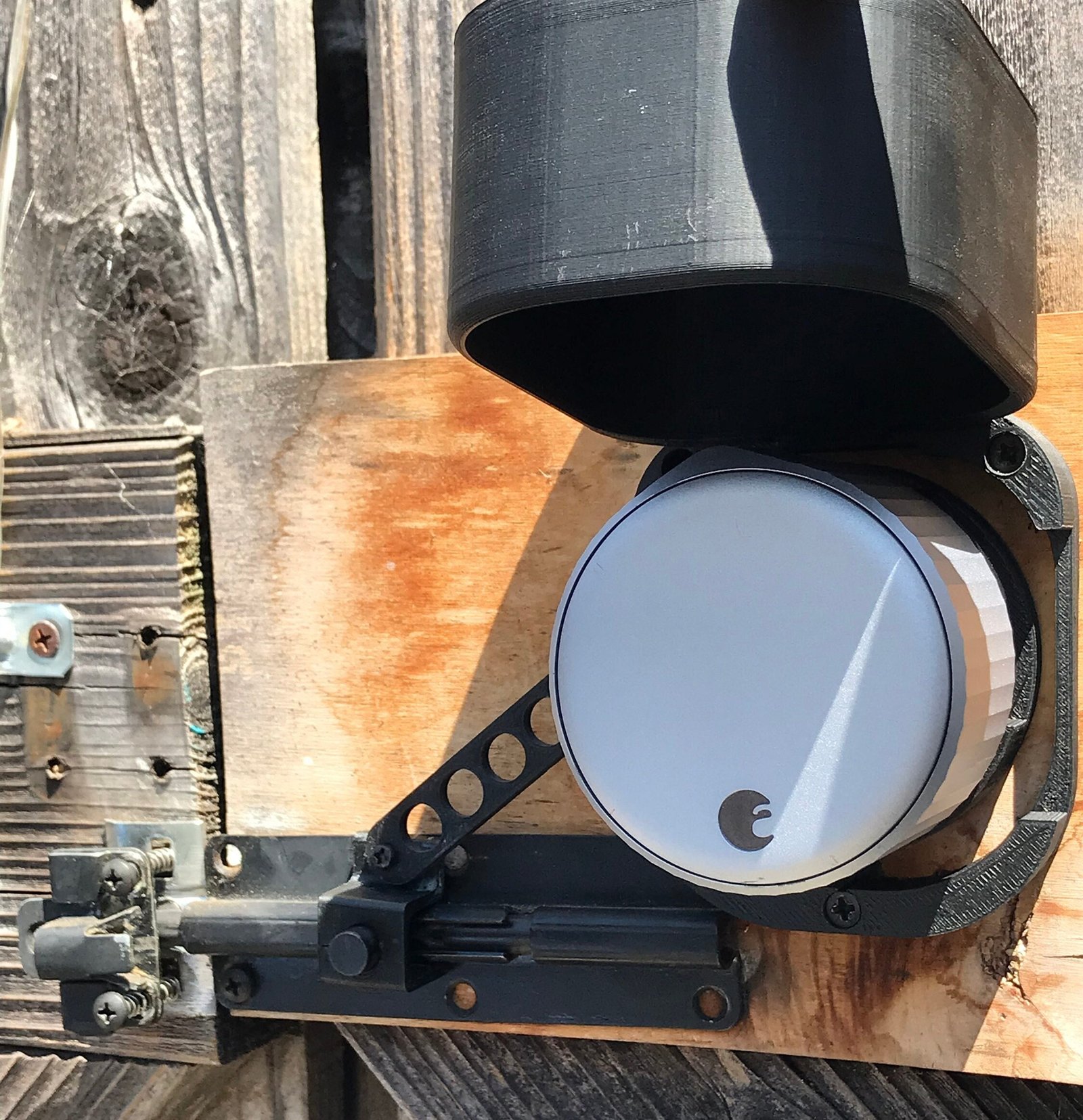 SturdyLock® Outdoor Gate Smart Lock Adapter and Housing for August 3rd Gen Pro 3rd Gen Wi-Fi 4th Gen; with SLIDING BARREL Bolt