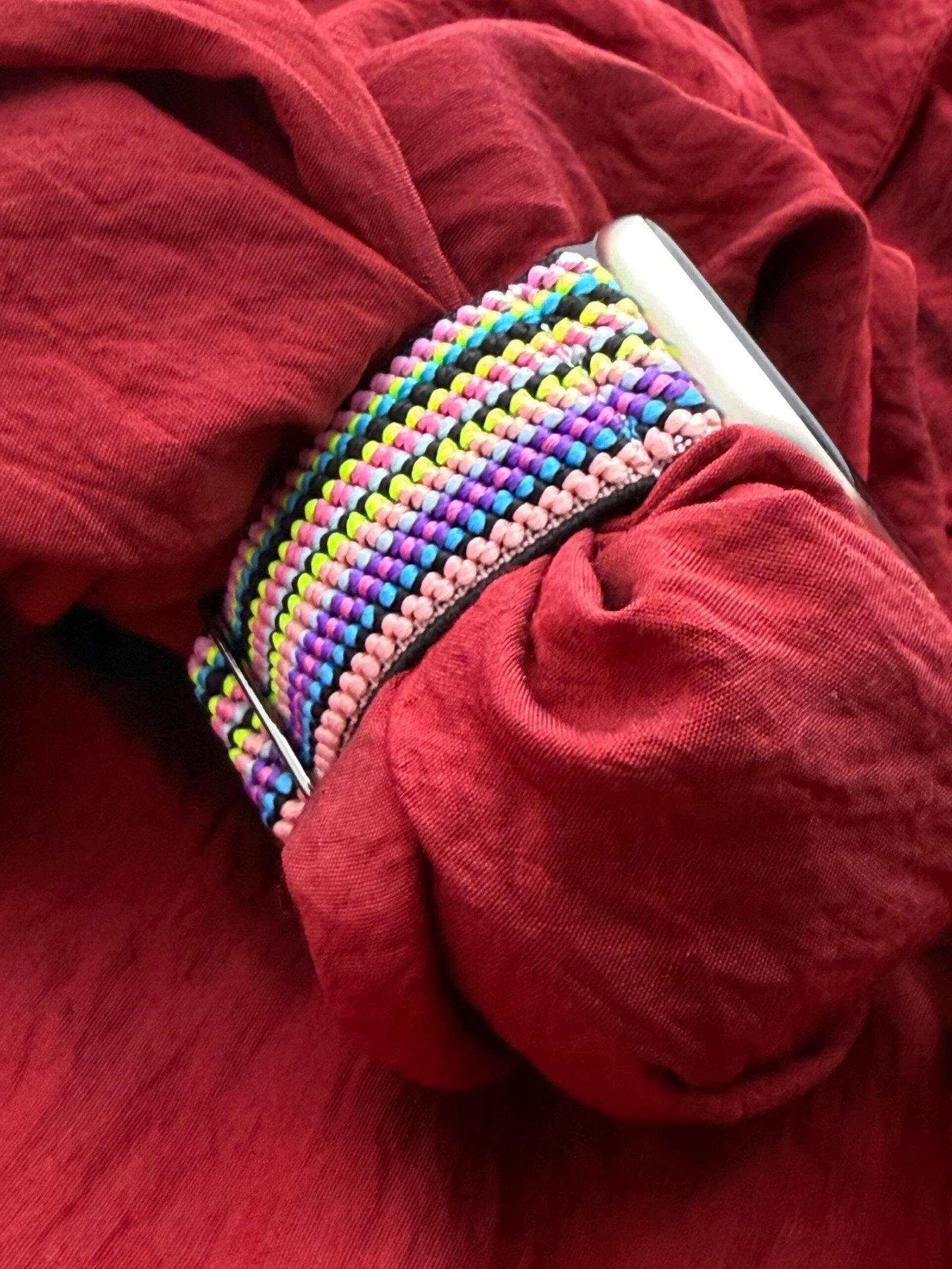 This Nylon Apple Watch band features a textured finish, contrast stitching for a unique look. Made from genuine leather with a soft inner lining for comfort. Stylish, durable, and easy to wear every day. BAND M A T E R I A L • Nylon B U C K L E S T Y L E • Plastic Buckle S I Z E S P E C I F I C A T I O N S • 38/40/41mm • 42mm Series 10 • 42/44/45/46/49mm WHY CHOOSE VELORASTRAP • Crafted with precision using high quality materials • Reduced costs compared to conventional sellers. • Breathable and lightweight wear perfect for everyday use. • This band is soft and durable providing superior comfort. COMPATIBLE WITH • Series 1 – 9, SE, Ultra, Ultra 2 38/40/41mm & 42/44/45mm cases & 49mm case Series 1, Series 2, Series 3, Series 4, Series 5, Series 6, Series 7, Series 8, Series 9 Apple watch SE, Apple Watch Ultra 49mm, Apple Watch Ultra 2. PROCESSING ∙ T I M E • All items are custom made to order. Our current turnaround time is about 1 – 3 business days upon ordering. S H I P P I N G • U.S. : 4 – 9 business days • UK & EUROPE : 4 – 10 business days • REST OF THE WORLD : 7 – 12 business days A B O U T VELORASTRAP Velorastrap: Where craftsmanship meets design and affordability. Explore our range, featuring georgous and comfy bands for your smart watch tailored to suit every style. Velorastrap is not just a strap brand; it is a lifestyle that reflects elegance, quality, and personality. Every detail embodies fine craftsmanship, premium materials, and a timeless sense of style. Appealing to a young, dynamic, and originality-seeking audience, Velorastrap rejects the “ordinary” and writes a unique story on every wrist.