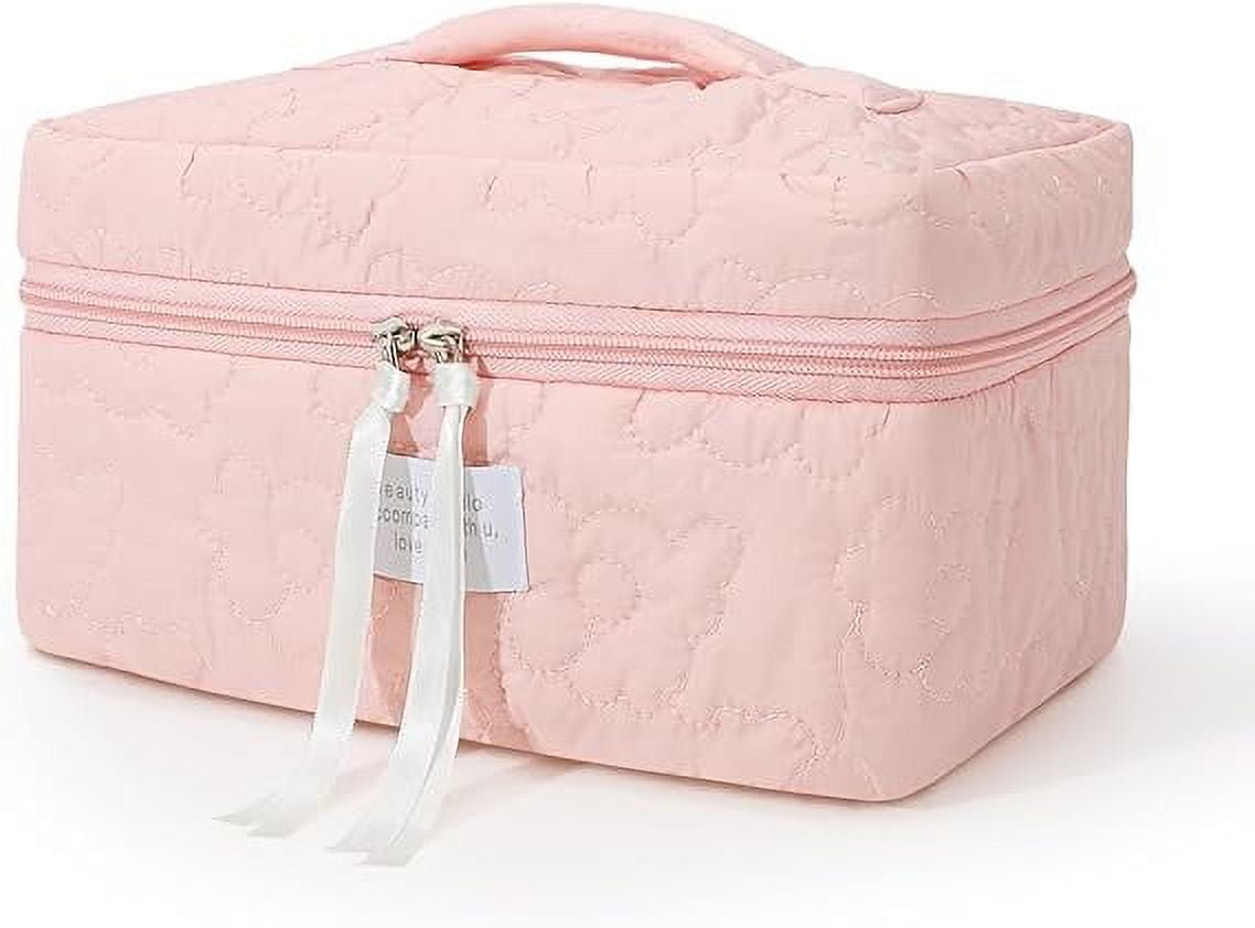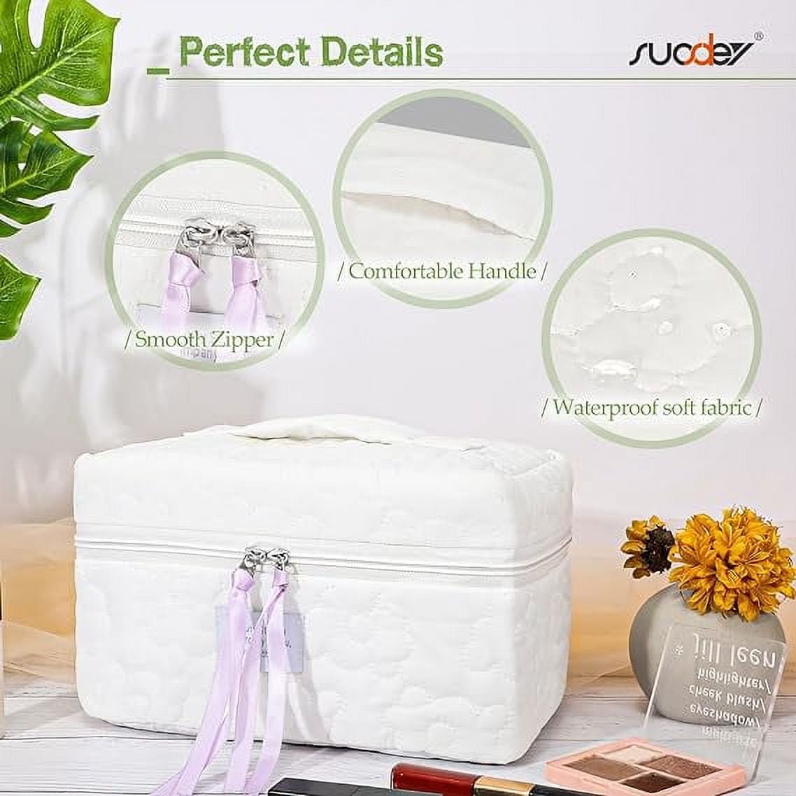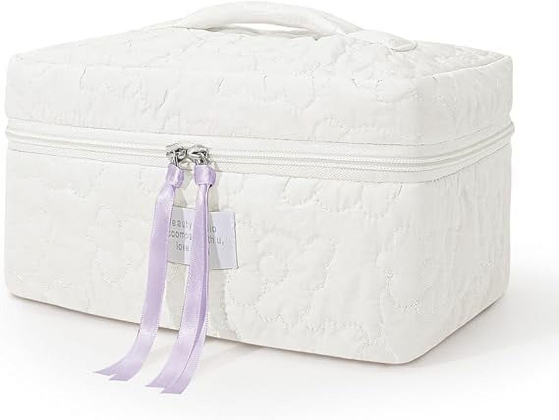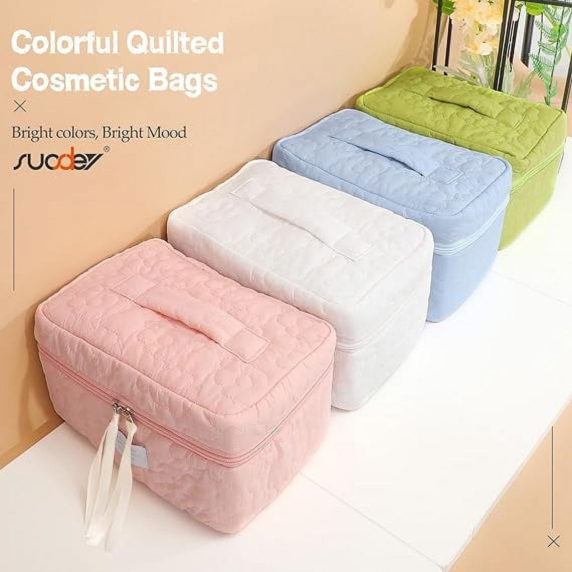 SUOSDEY Women Girls Cotton Travel Makeup Bag,Portable Large Cosmetic Toiletry Bag Organizer Box