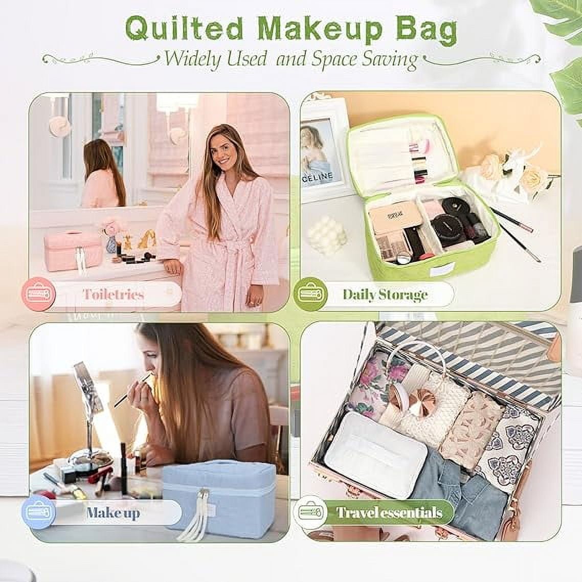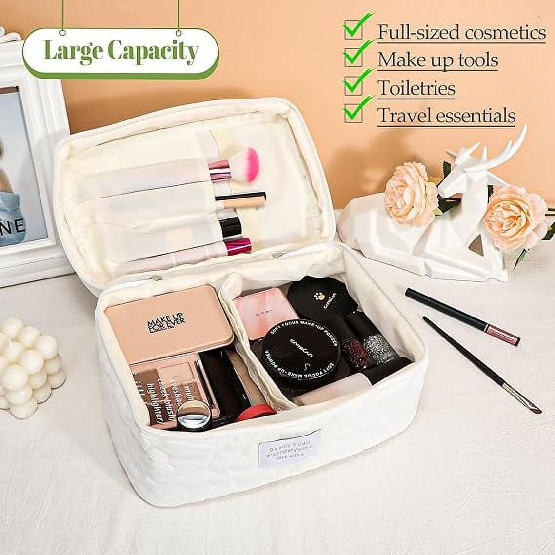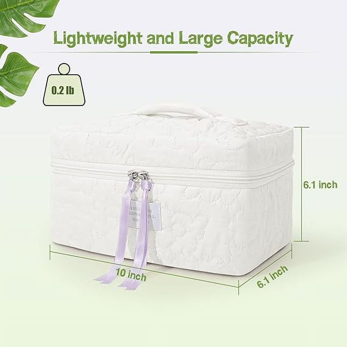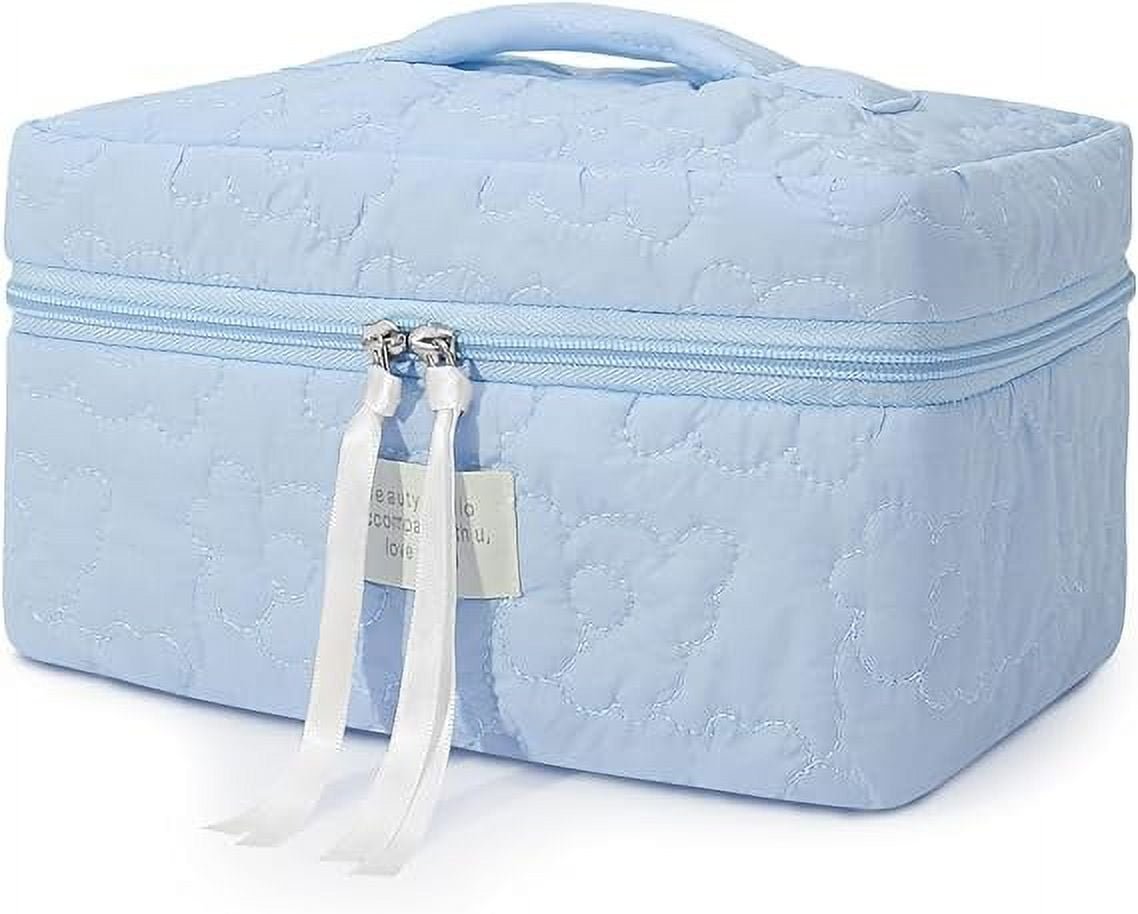 SUOSDEY Women Girls Cotton Travel Makeup Bag,Portable Large Cosmetic Toiletry Bag Organizer Box
