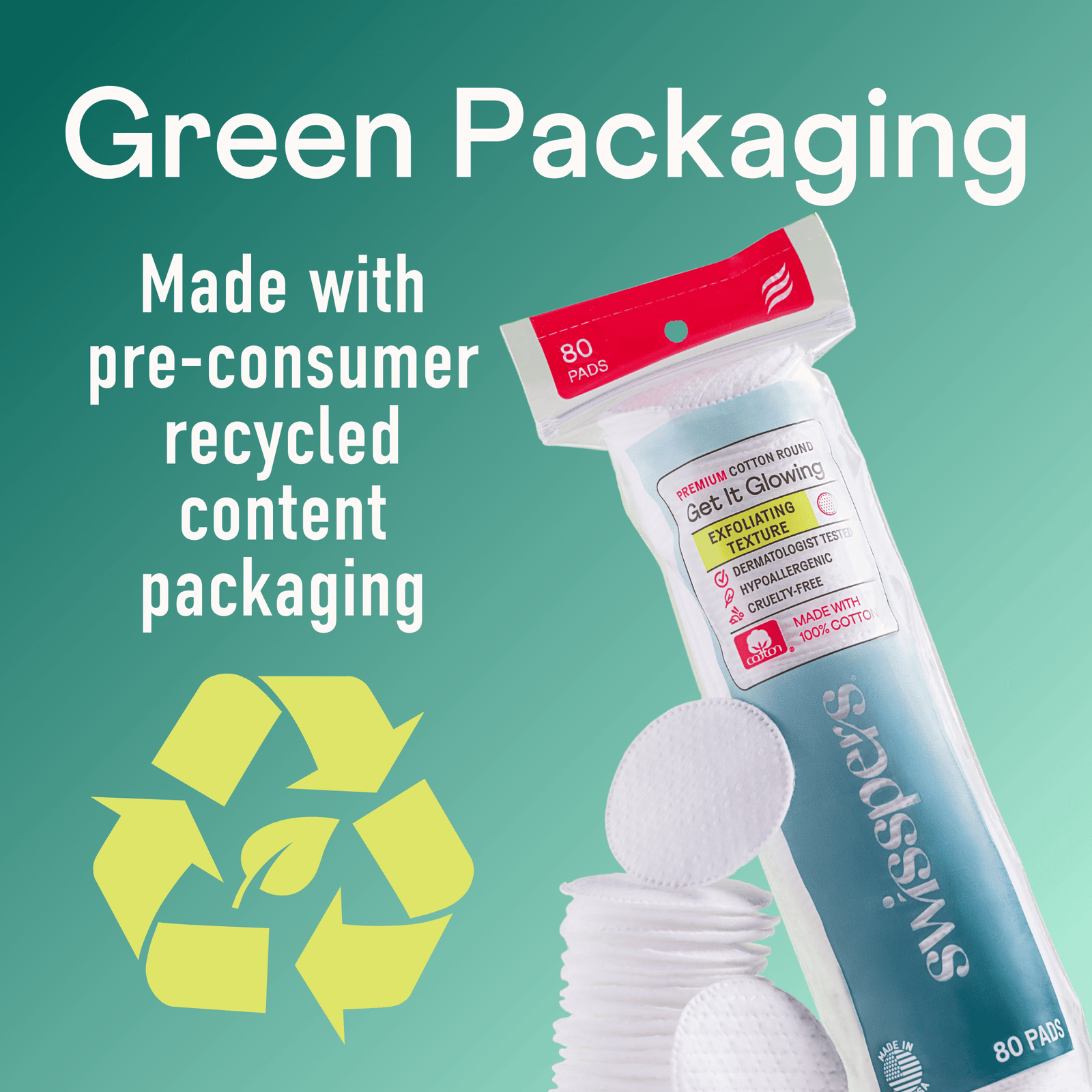 Swisspers Premium Exfoliating 100% Pure Chlorine Free Cotton Rounds, Dermatologist Tested, Soft, Absorbent, Dual-Sided, Gentle Natural Exfoliation, Sensitive Skin Safe, Vegan, Cruelty-Free, 80 Pads