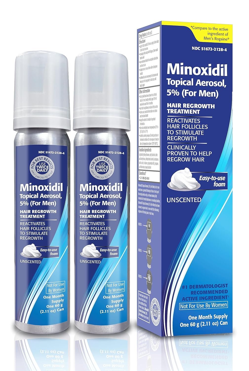 #1 Dermatologist Recommended Ingredient: Gentle and effective daily 5% Minoxidil hair loss treatments for men. The Minoxidil foam is unscented and should not irritate the scalp