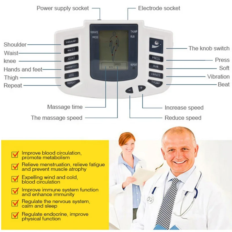 TENS Pulse Body Massager Dual Channel Low-frequency Acupuncture Moxibustion Unit EMS Muscle Stimulator Pain Relief Health Care