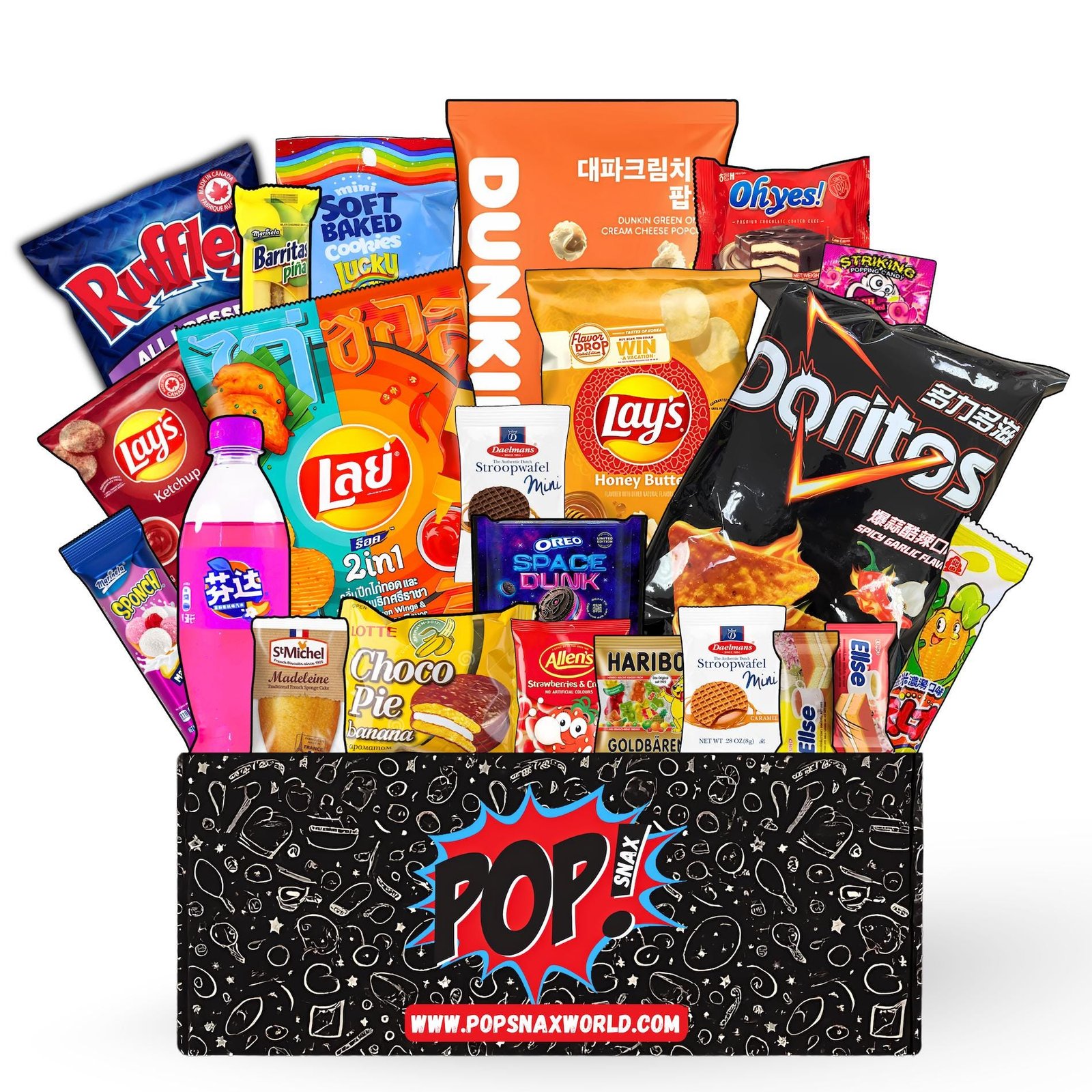 Inside, you’ll discover a bold variety of chips, cookies, candy, pastries, & surprises. The lineup changes often & reflects the most crave-worthy, rare finds from Asia, Europe, Latin America, and beyond! Some items may match what’s pictured, others may not, but all are guaranteed to deliver “main character” energy 😉