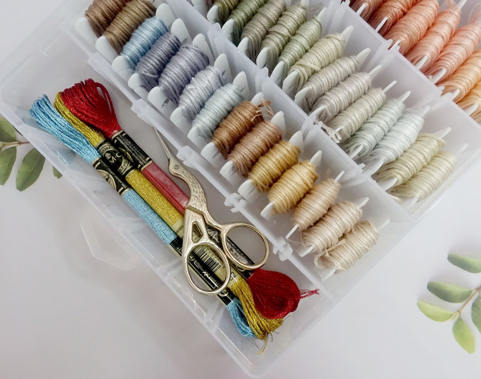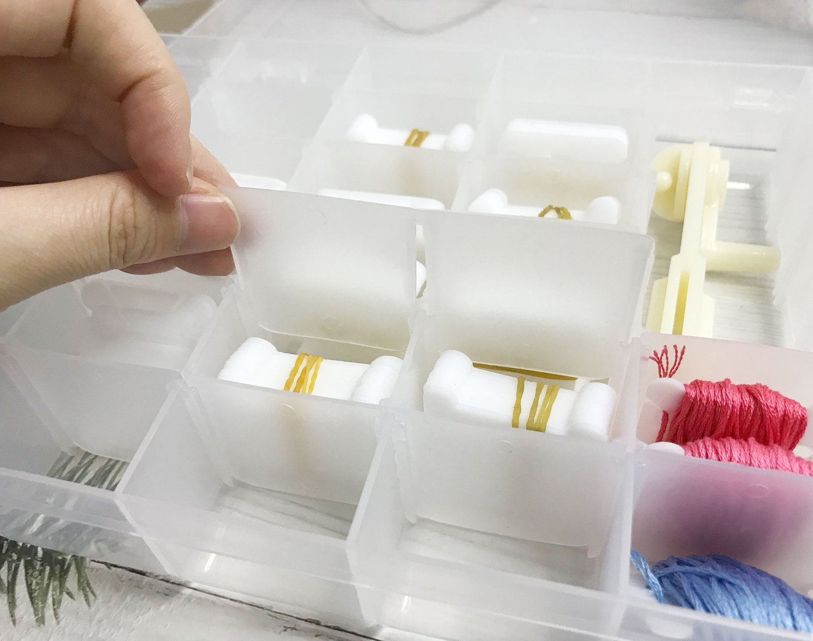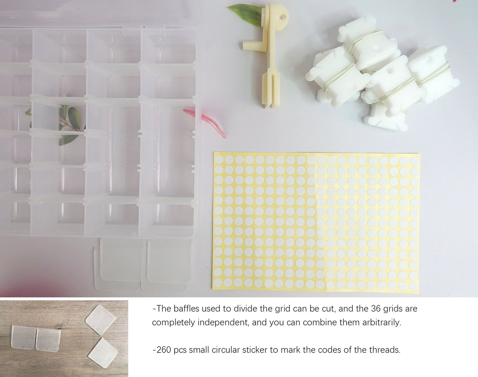 Thickened Embroidery Floss Organizer Box, 36 Adjustable Grids,100 Plastic Floss Bobbins, Beads Buttons Divided Storage Containers