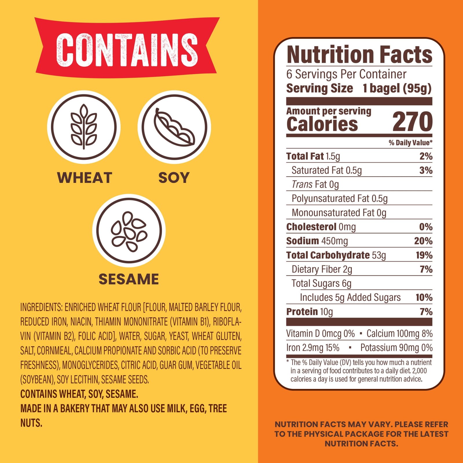 Thomas' Plain Bagels, 6 count, 10g Protein, Kosher Bagels, 20 oz Bag