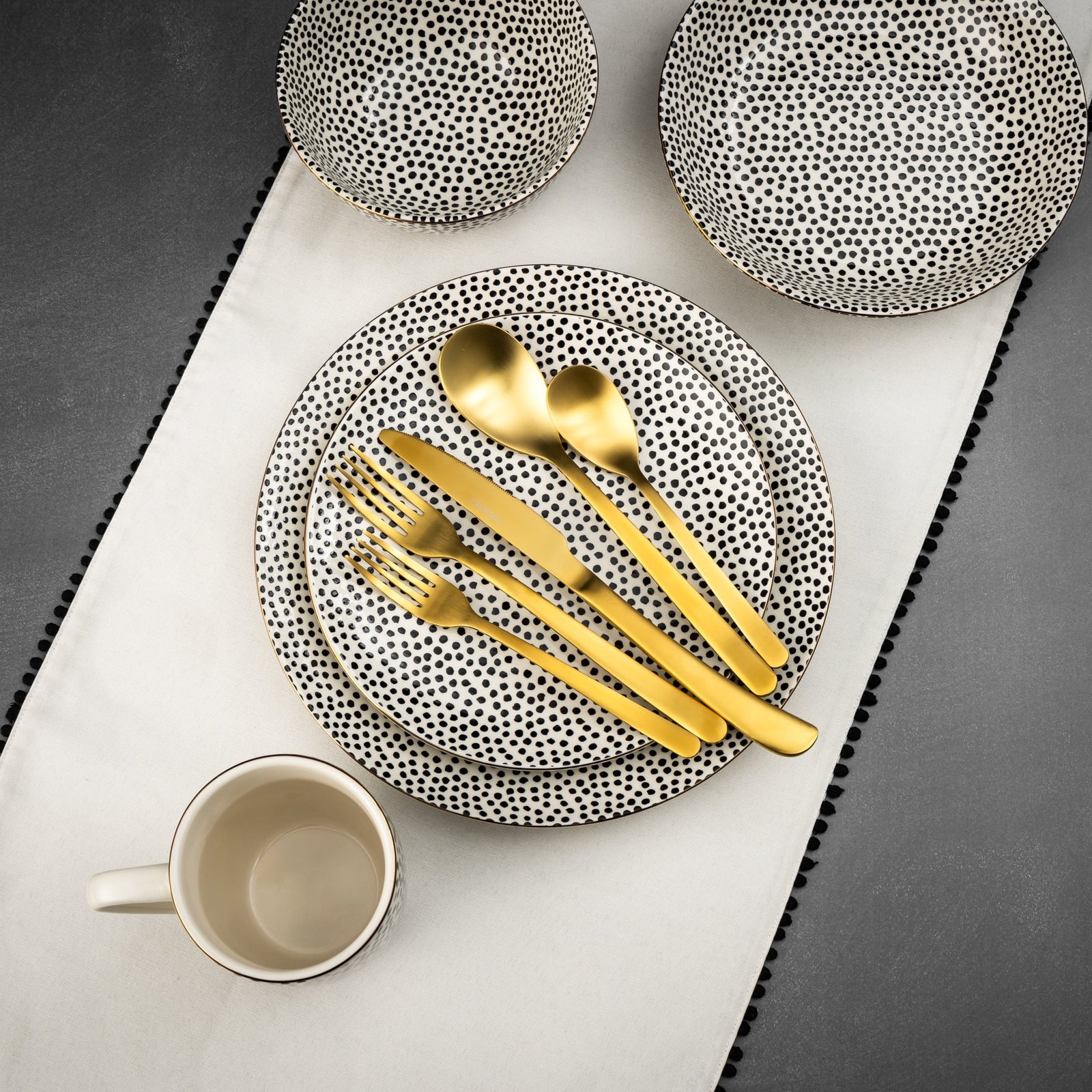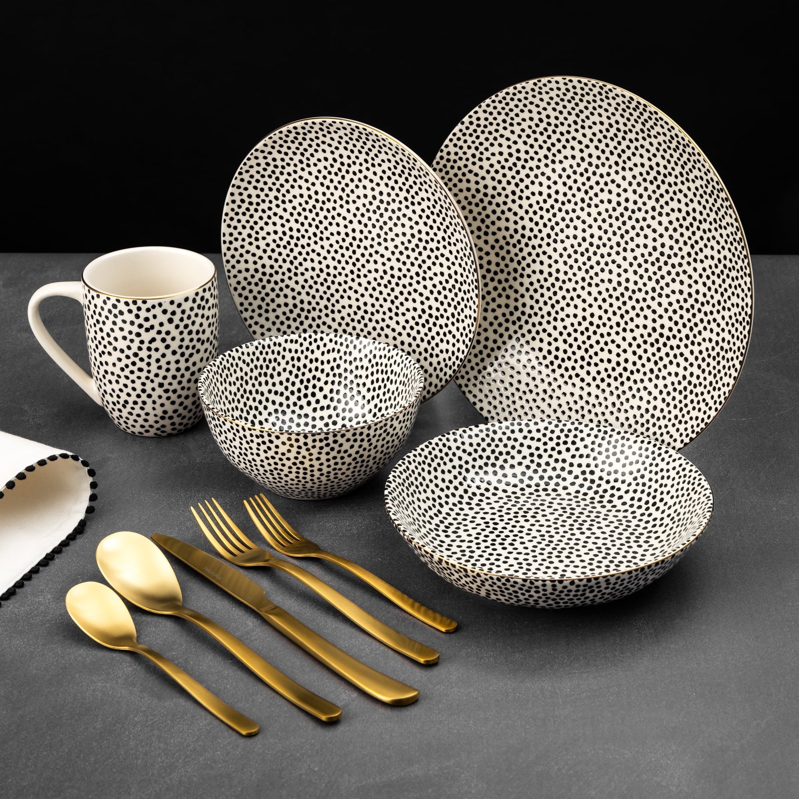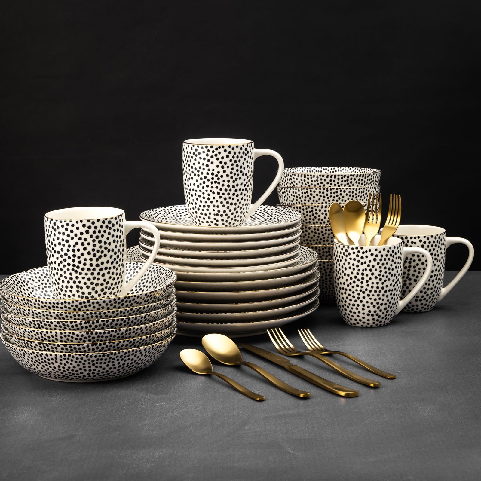 Thyme & Table 60-Piece Dot Dinnerware & Gold Flatware Set, Service for 6