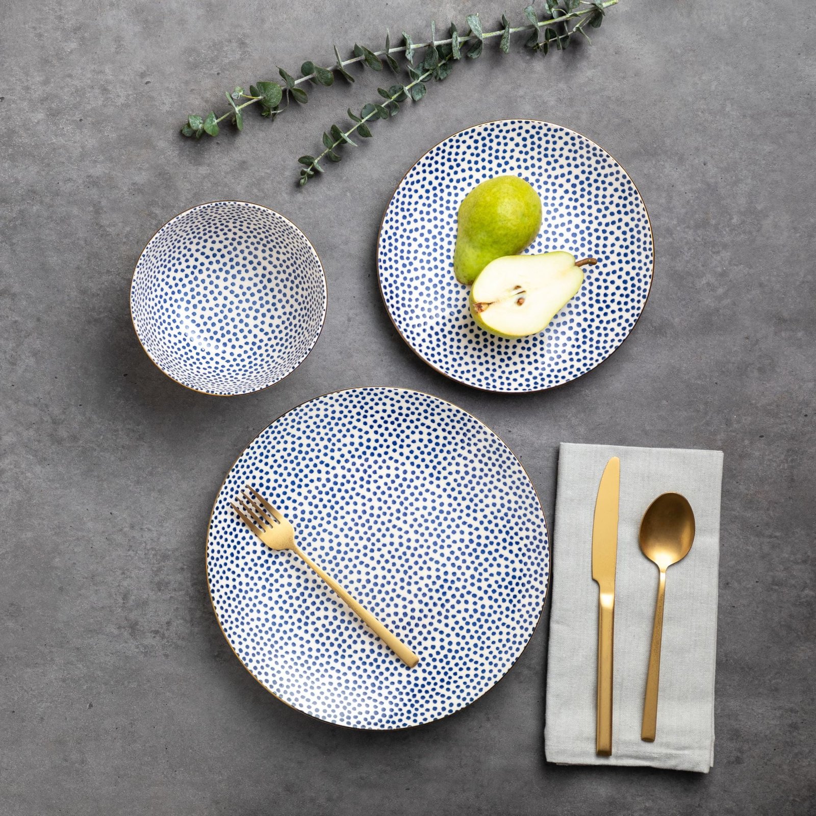 - Thyme & Table Dot 12-Piece Ceramic Dinnerware Set Blue