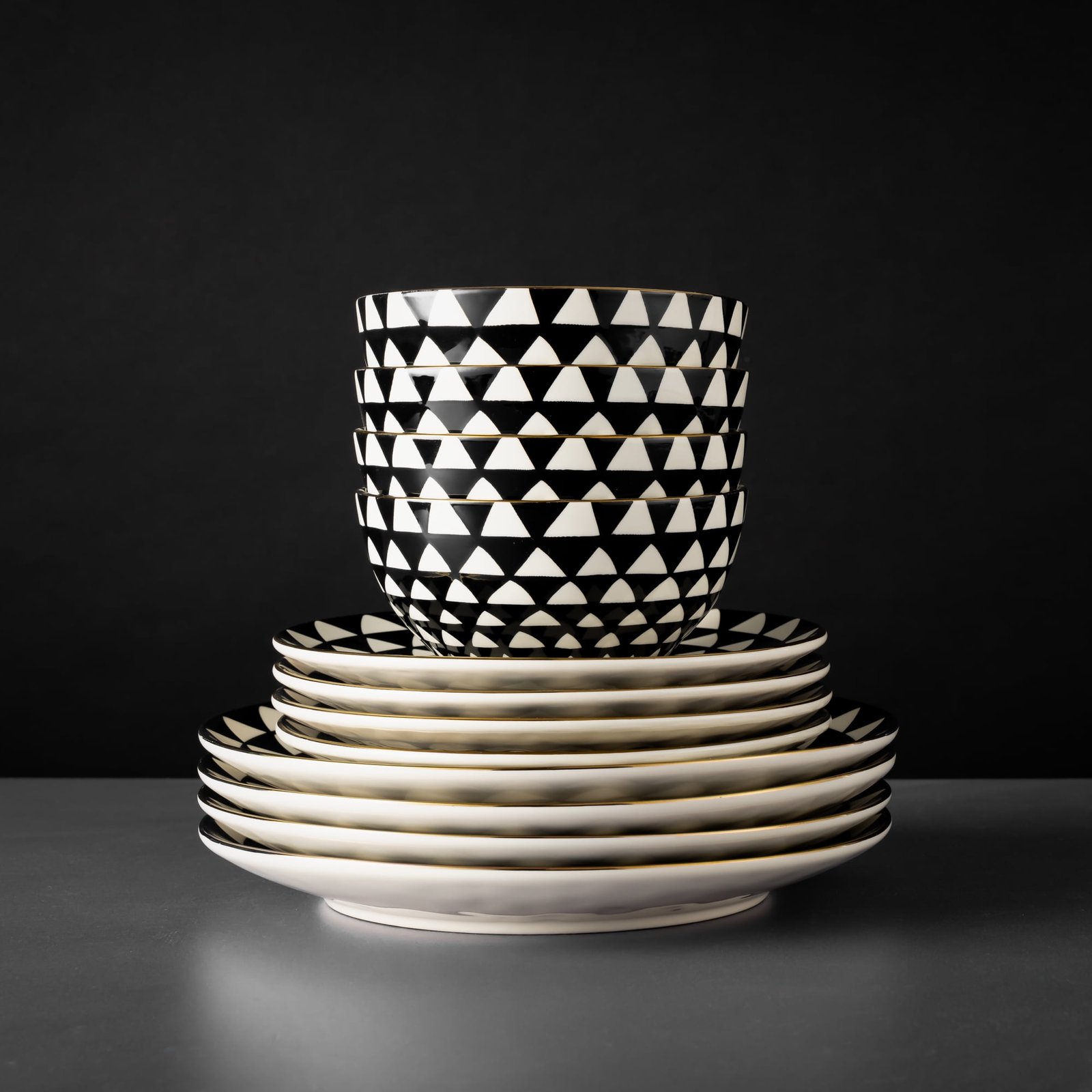 Thyme & Table Medallion 12-Piece Ceramic Dinnerware Set Black and White