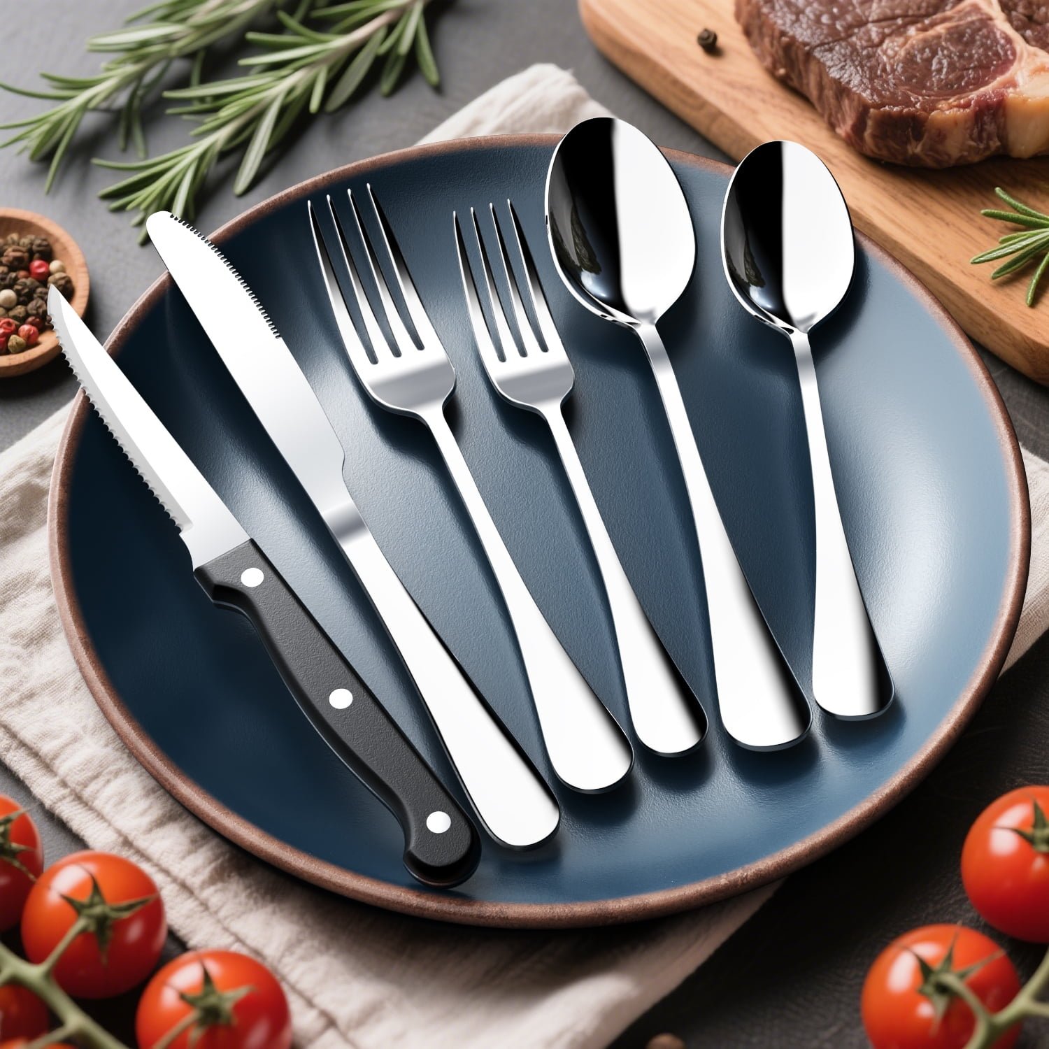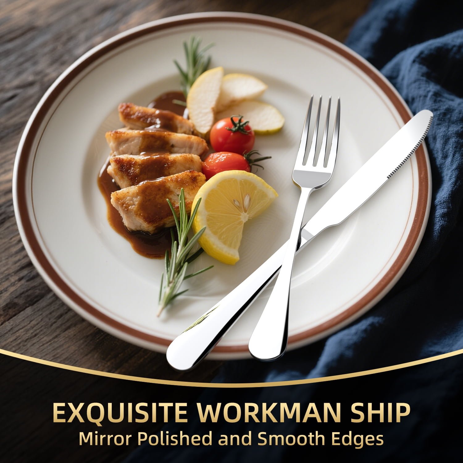Premium Stainless Steel Build:Crafted from high-quality food-grade stainless steel, this flatware set boasts remarkable durability, rust-resistance, and corrosion resistance. The stainless steel is non-toxic and BPA-free, ensuring your safety. Its robust construction guarantees long-lasting use, and the set is dishwasher safe for easy cleaning.