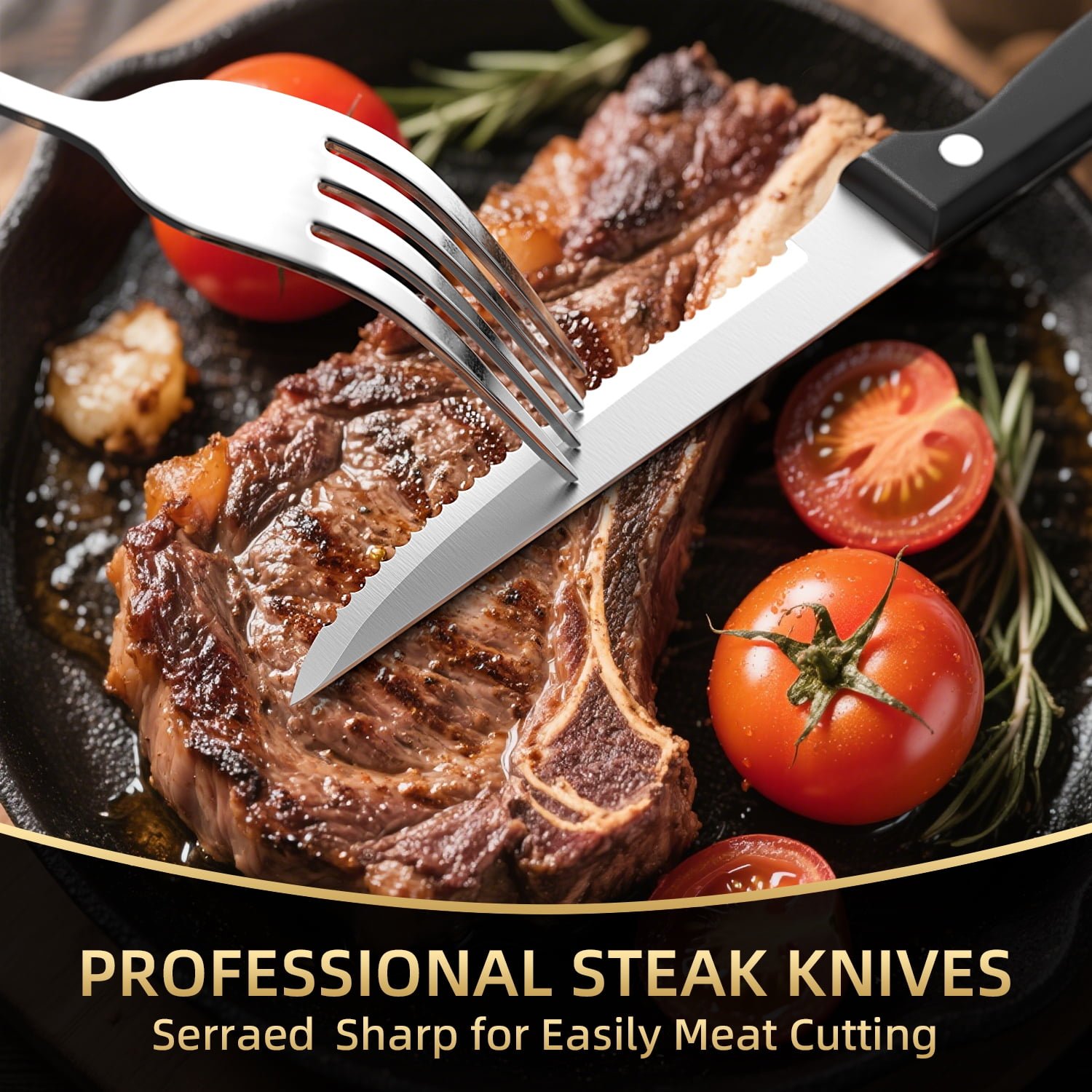 TINANA Silverware Sets, 24 PCS Flatware Set for 4, Premium Stainless Steel Cutlery Utensil Set with Steak Knives Mirror Polished Forks and Spoons, Dishwasher Safe