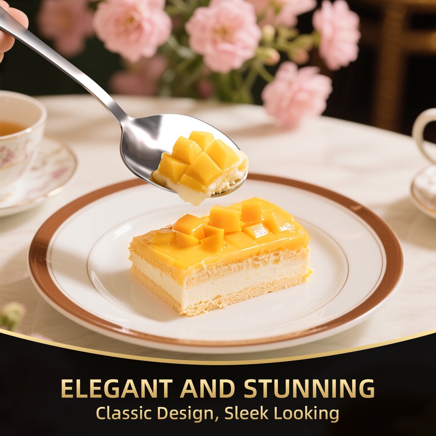 Elegance and Fine Craftsmanship:The flatware set showcases a highly mirror-polished finish that highlights its elegant shape and classic design. Its refined appearance adds a touch of sophistication to any dining setting, complementing various home styles and tableware. The set is meticulously crafted with no rough spots or sharp edges, ensuring a comfortable dining experience.