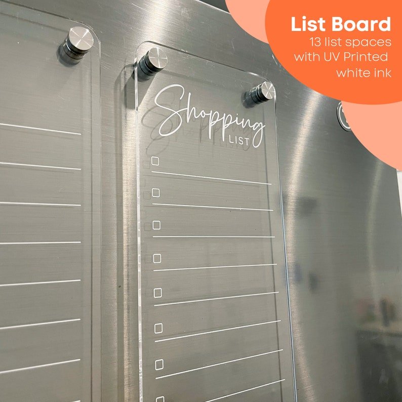 To Do List Fridge Acrylic Planner – WHITE UV Print ORIGINAL Design – Clear Acrylic Whiteboard Checklist Board – Shopping List – Checklist