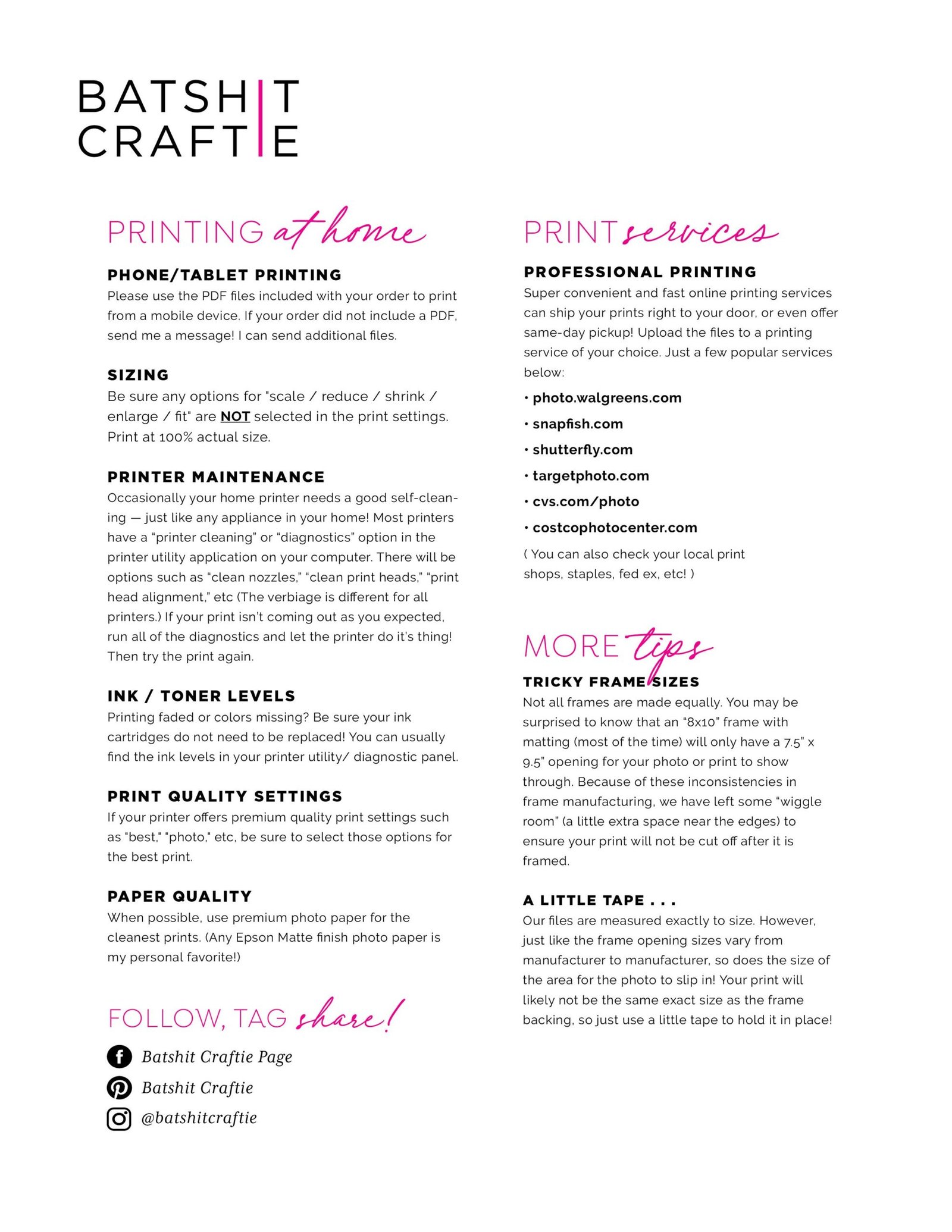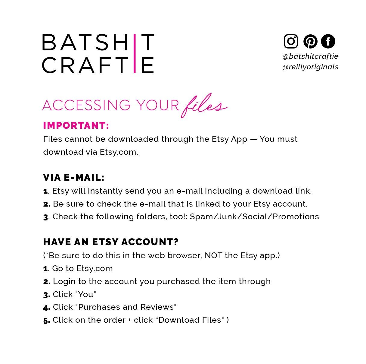 * MORE FILE ACCESS + PRINTING TIPS BELOW and @ www.batshitcraftie.com/faq