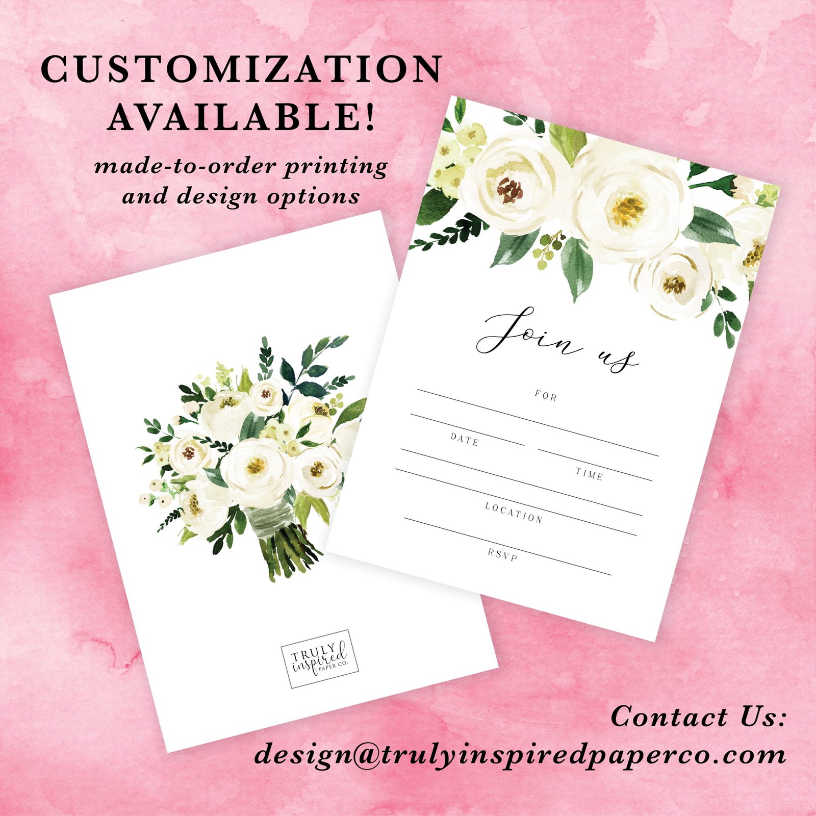 Truly Inspired Paper Co. Invitations, Soft White Florals, 25 Pack, 5×7 Inch