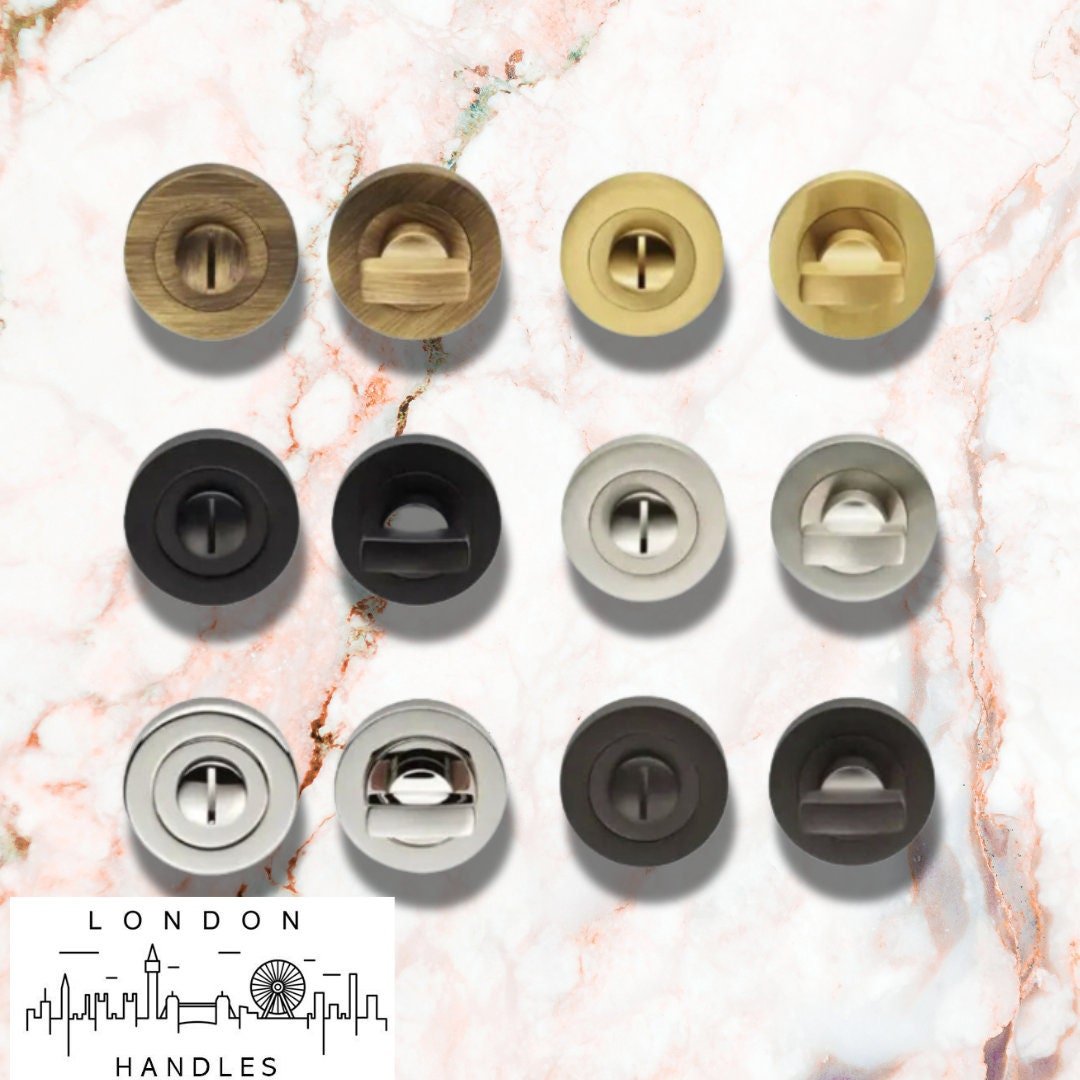 Turn and Release Bathroom lock in variety of finishes. solid brass privacy lock turn with emergency release