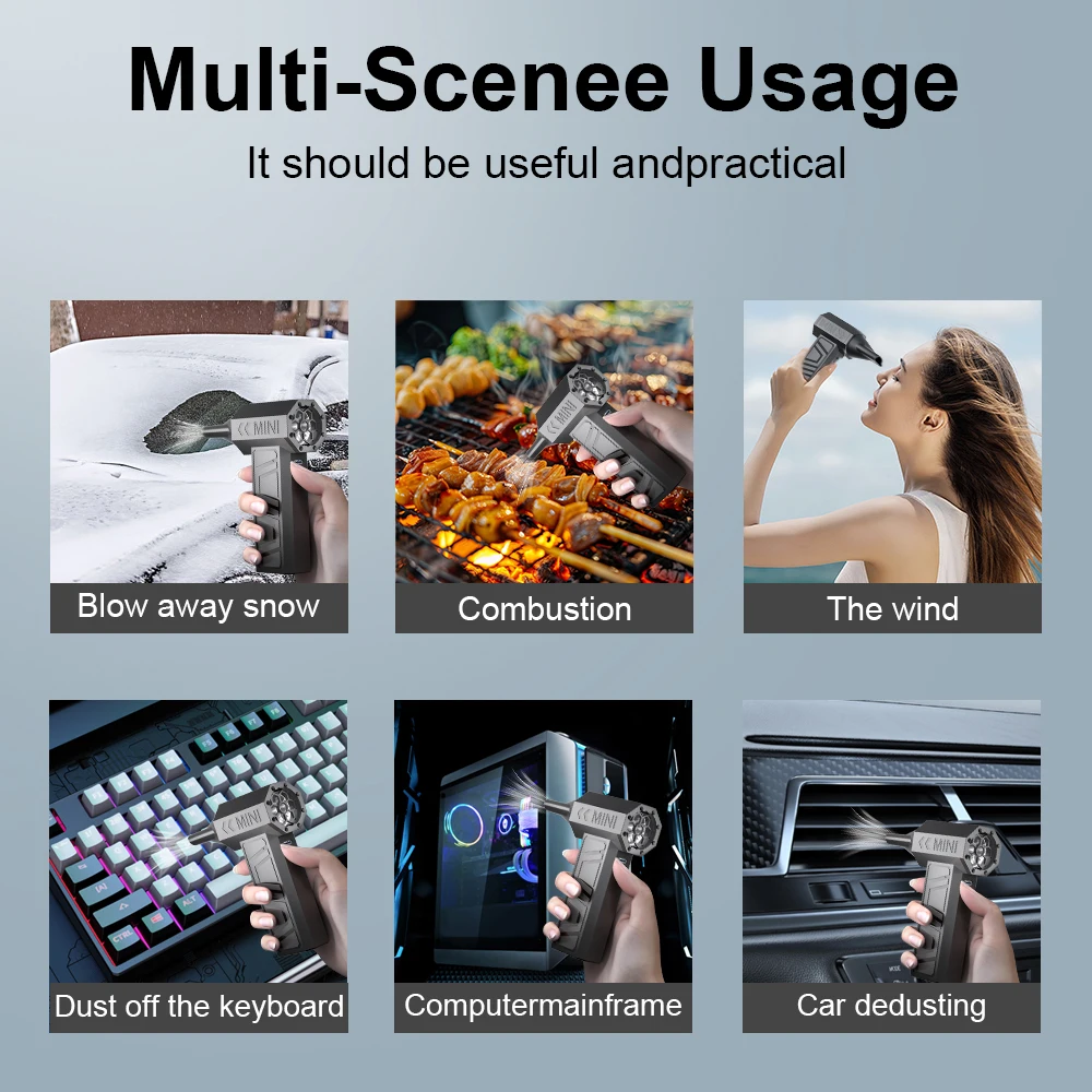 Type-C Charging Turbo Jet Fan 130000RPM Car Fan 5 Outlet Nozzles Portable Blowing Snow Cleaning Blower Tool Electric Air Duster