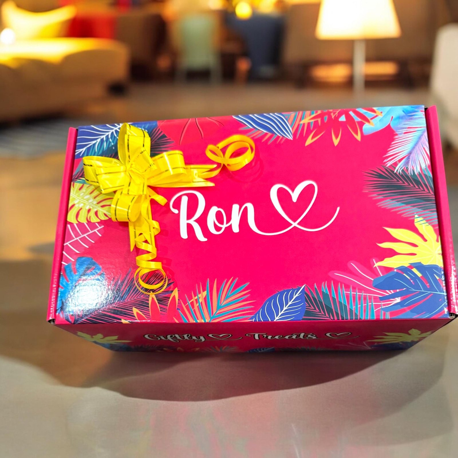 Our box comes with recipient name on top. Please let us know what name you would like on the top.