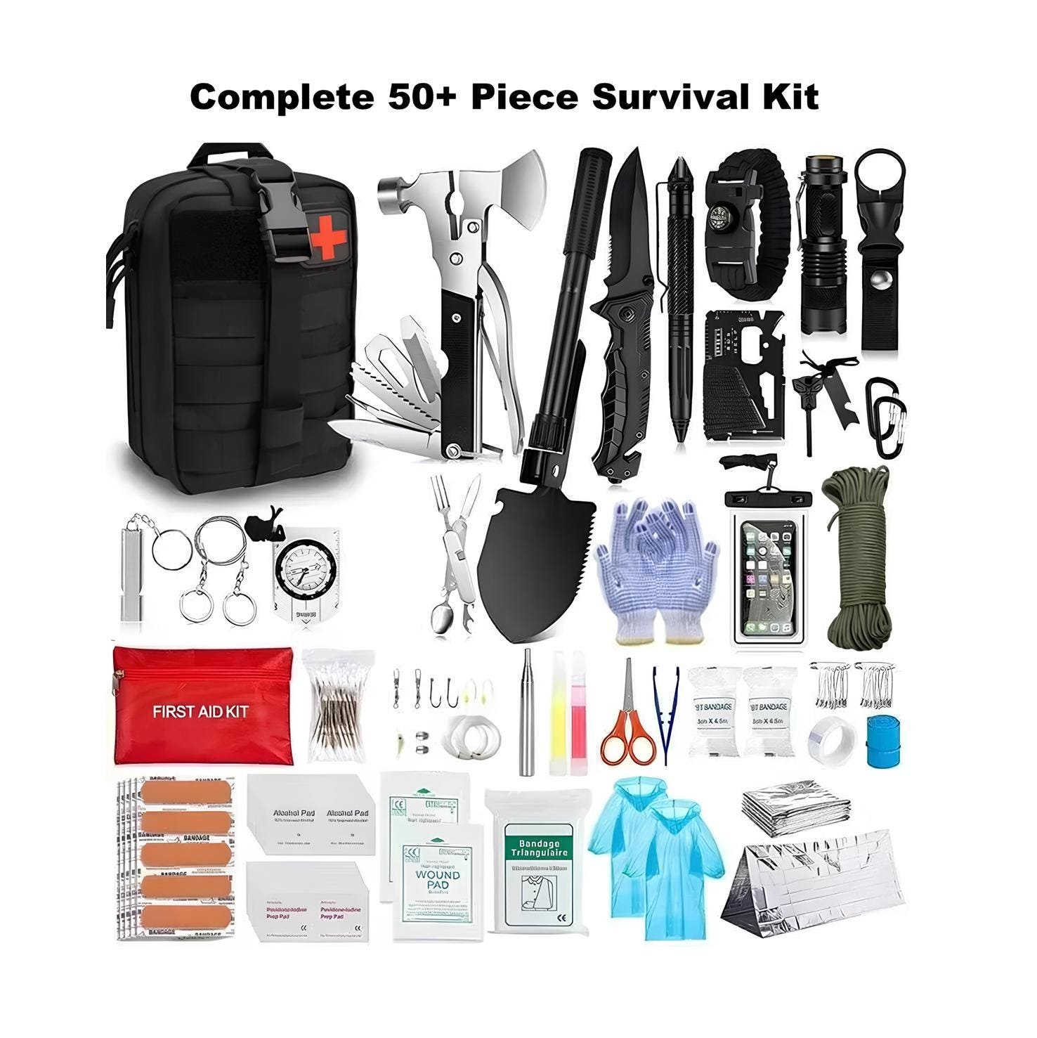 Ultimate Survival Kit 50+ Tools | MOLLE Emergency Bag for Camping, Hiking, Car & Disaster Preparedness | Tactical Outdoor First Aid Gear