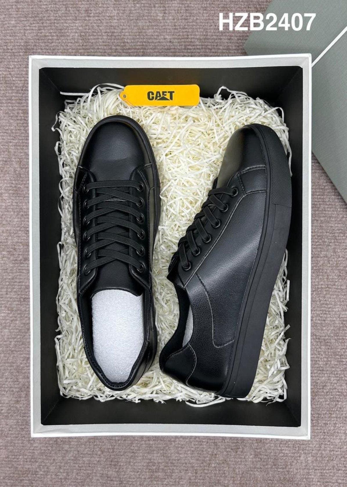 These sleek . low profile black leather features a smooth leather exterior , offering a refined style for both casual and dressy look. A lace up closure ensures an adjustable , snug fit and cushioned interior provides all day comfort.