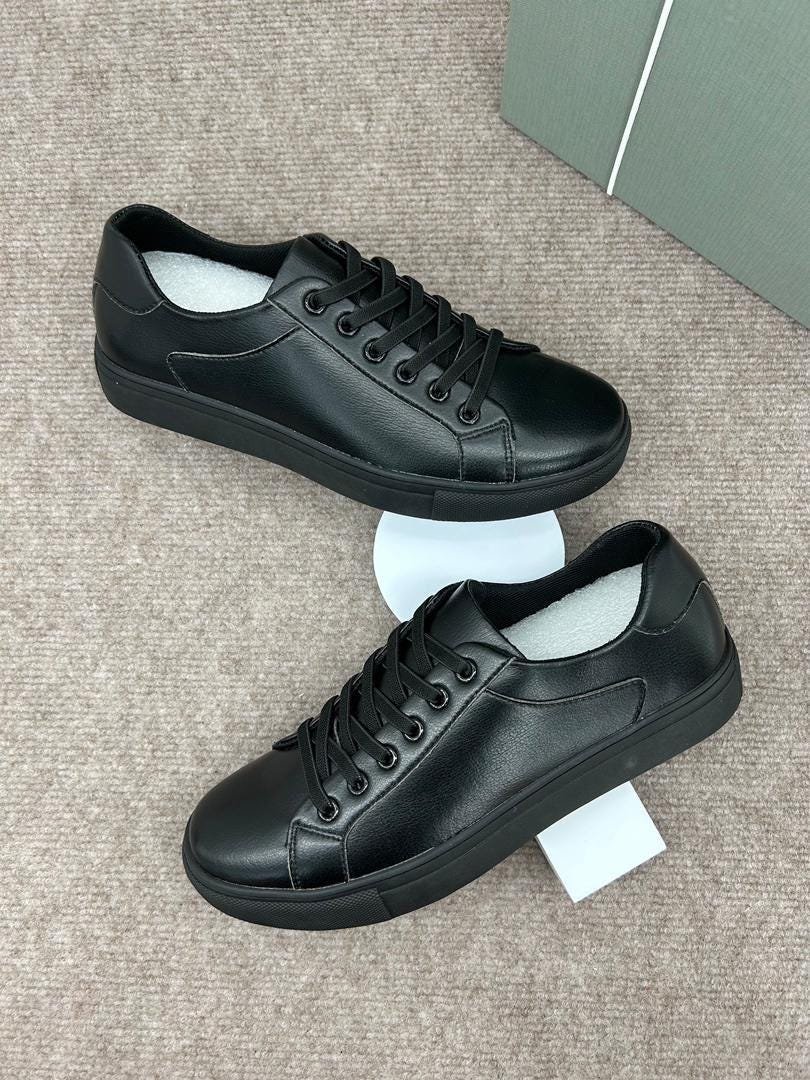 Unisex Black Leather Low Top Sneakers: Lace-Up Casual Shoes