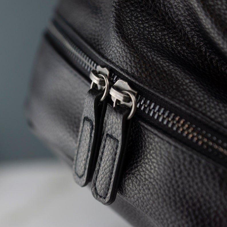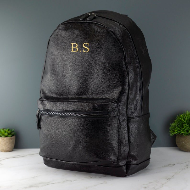 Unisex PU Leather Backpack Embroidered with Name Initials Work Laptop School Bag with Adjustable Straps