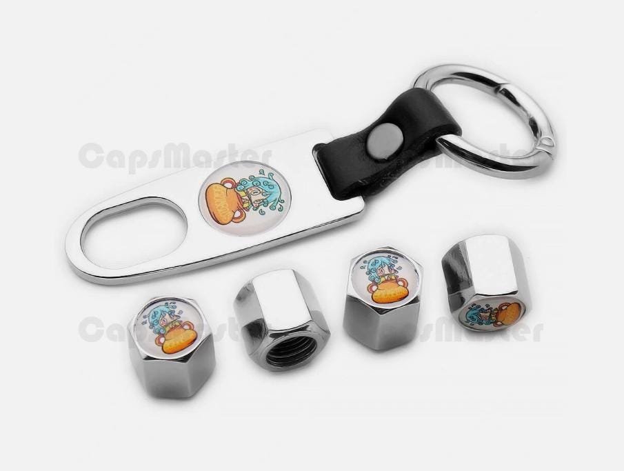 Universal Car Tire Valve Stem Air Caps + Multi-Function Keychain