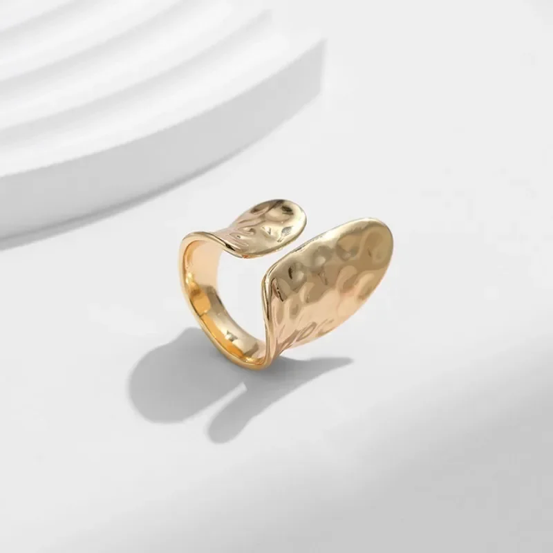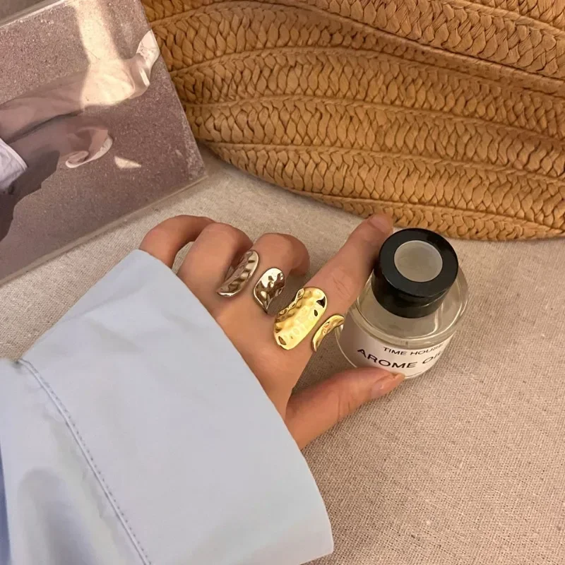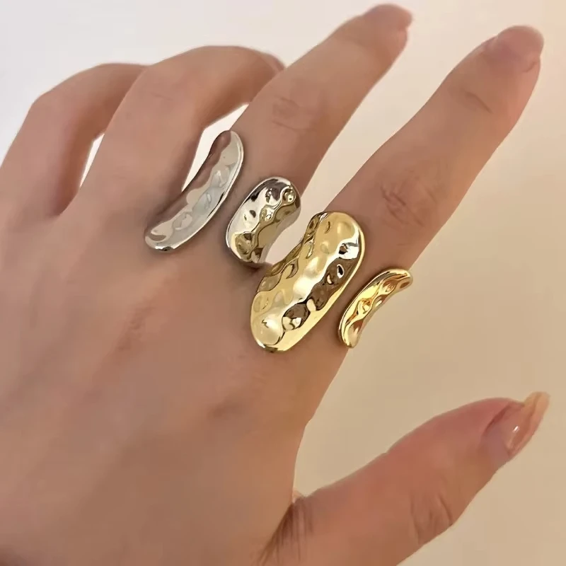 Uorich INS Wind Light Luxury Vintage Design Sense Opening Irregular Hammer Pattern Stainless Steel Rings for Women Jewelry Gifts