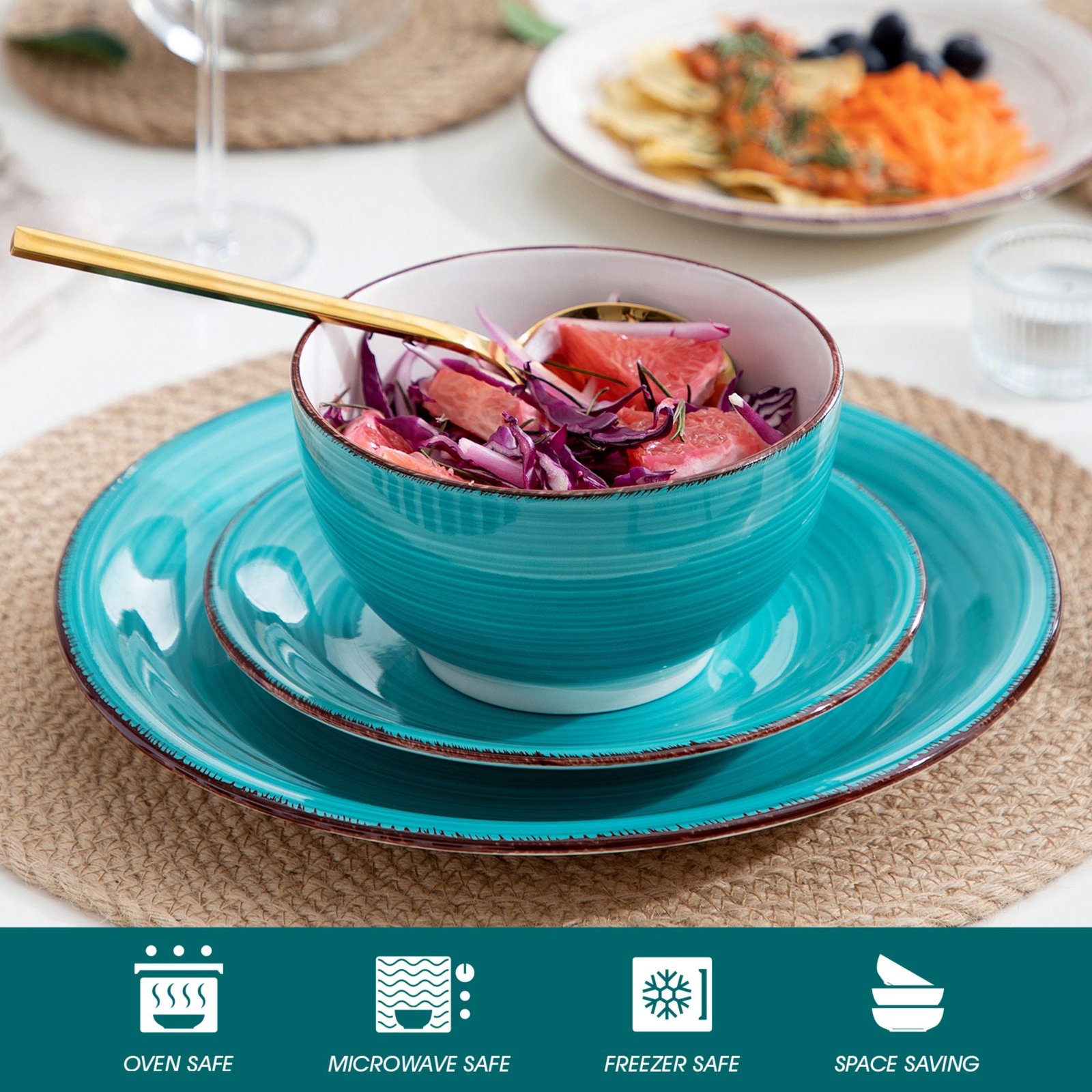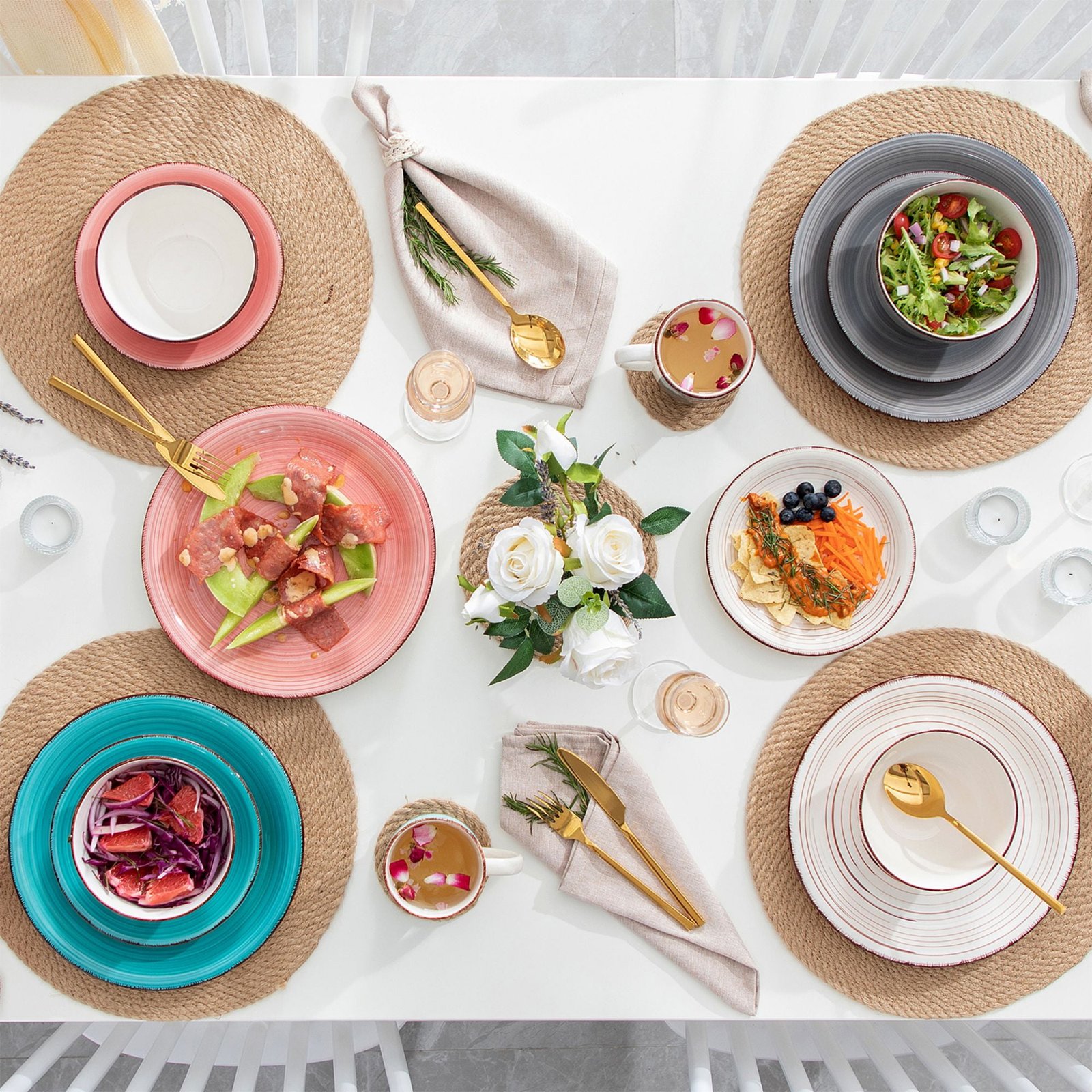 Premium Stoneware Plate Quality: Each plate and bowl has slightly curved edges to ensure better grip and keep the gravy and sauce from runoff.
