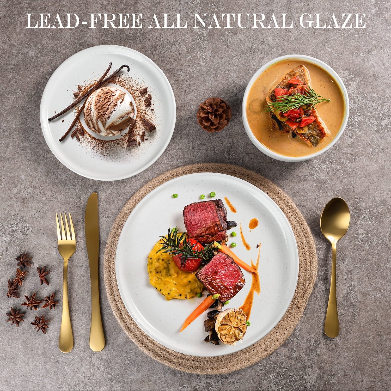 - Easy to Clean & Maintain: Thanks to the non-porous, glaze-coated finish, this dinnerware is easy to clean and resistant to staining. It is also dishwasher safe, offering ultimate convenience for everyday use