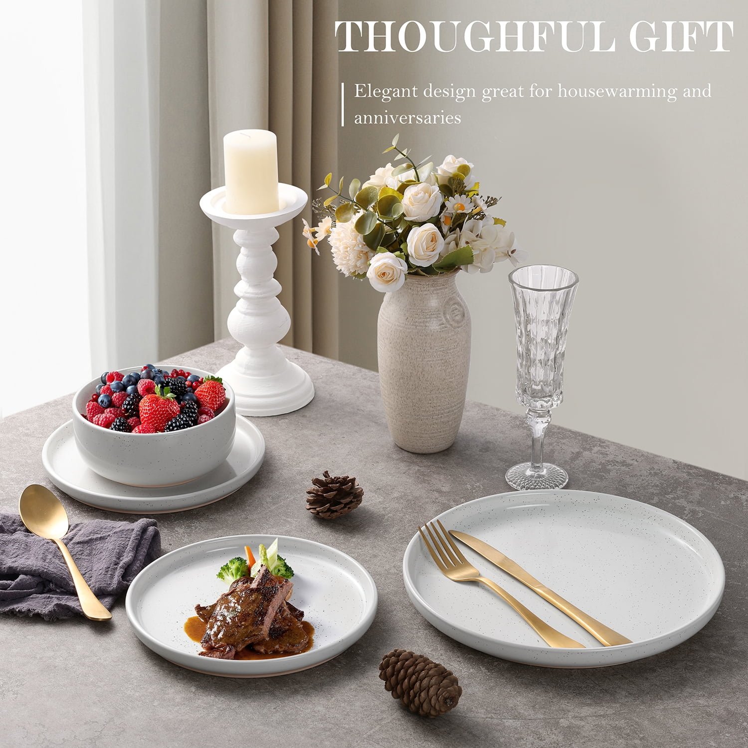 - Durable & Eco-Friendly: Crafted from high-quality, eco-conscious ceramic, this dinnerware set is strong and durable, stackable for space-saving and providing long-lasting performance while being environmentally friendly