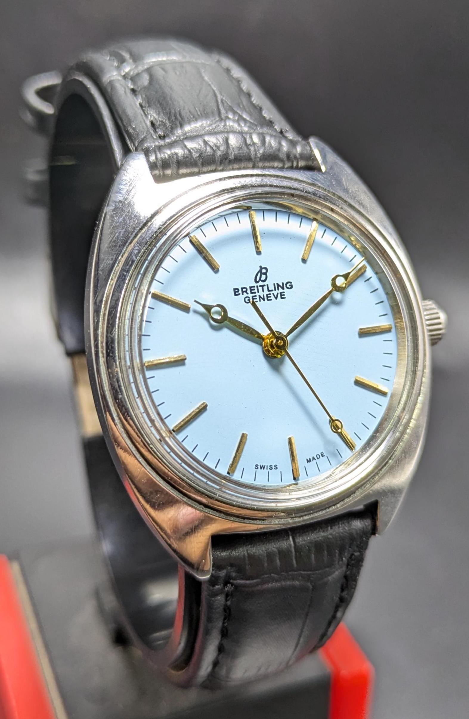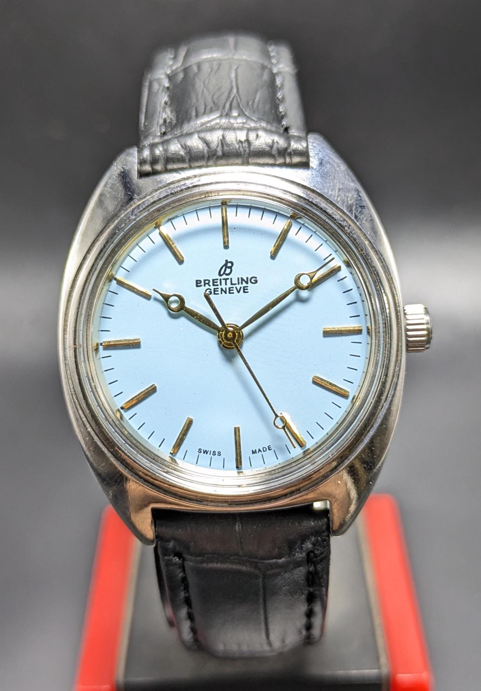 vintage BREITLING GENEVE 17 jewels Swiss made manual winding blue dial men's watch