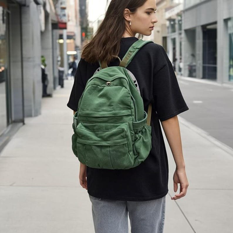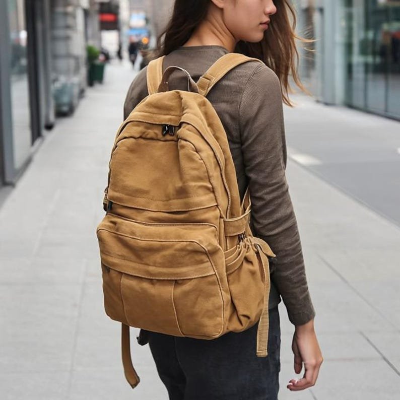 Vintage Canvas Backpack for Women | Kawaii School Bag, Laptop Backpack, College Student Travel Rucksack, Cute Girl Bookbag