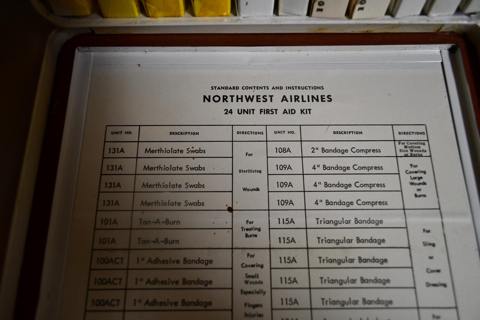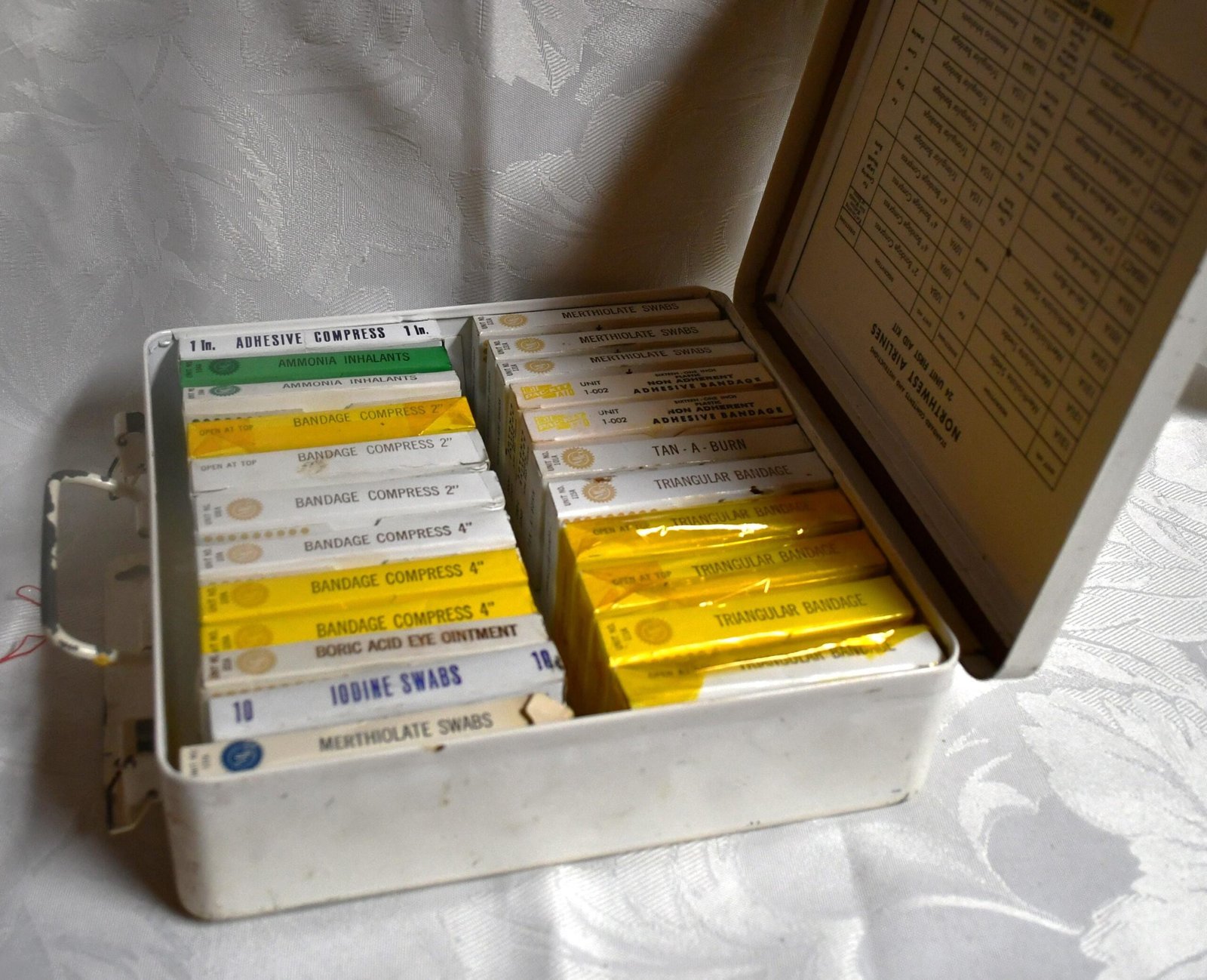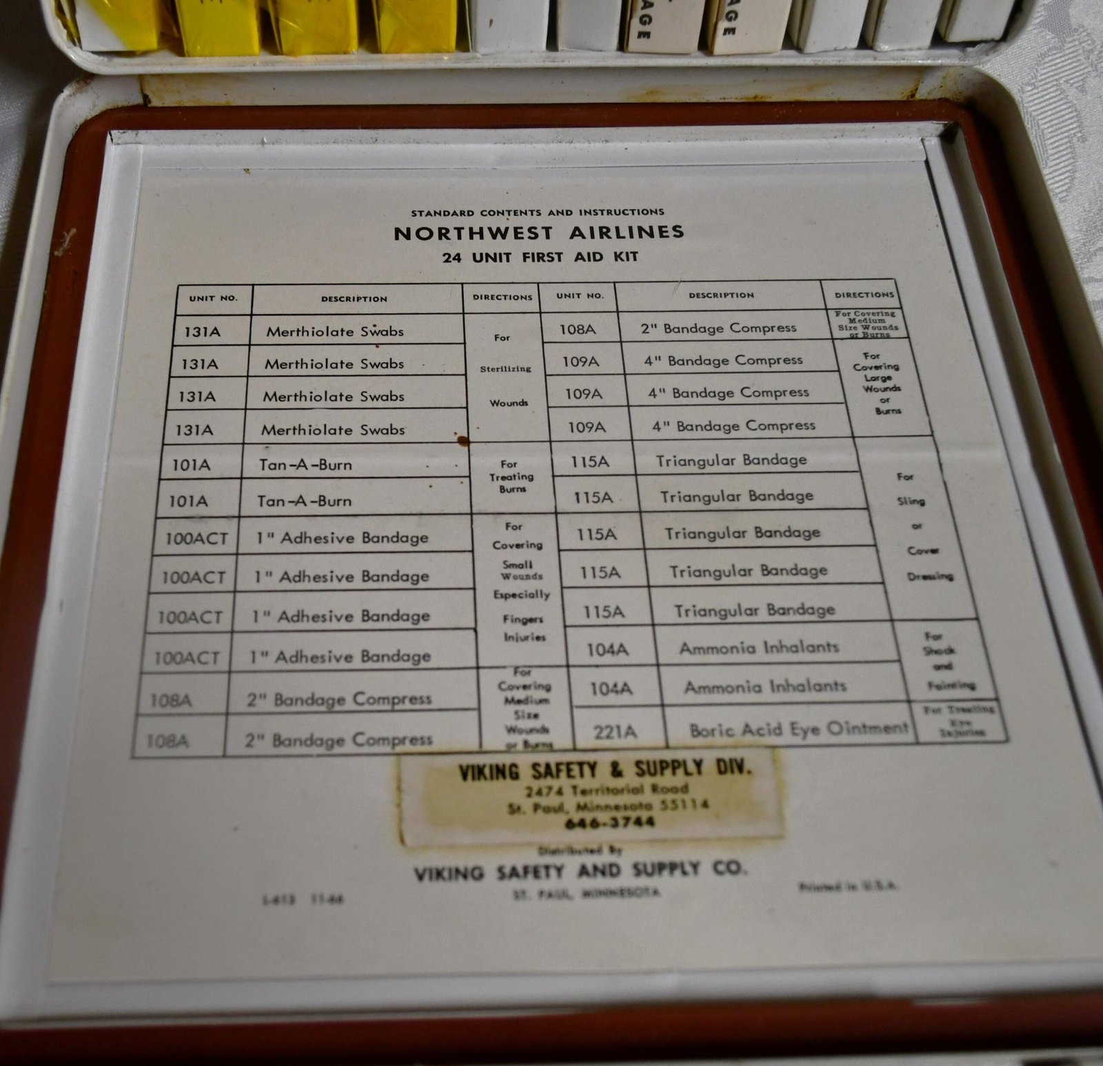Vintage Northwest Airlines Metal Case First Aid Kit No. 3–W Contents, Instructions-Appears Complete Distributed By Viking Safety & Supply