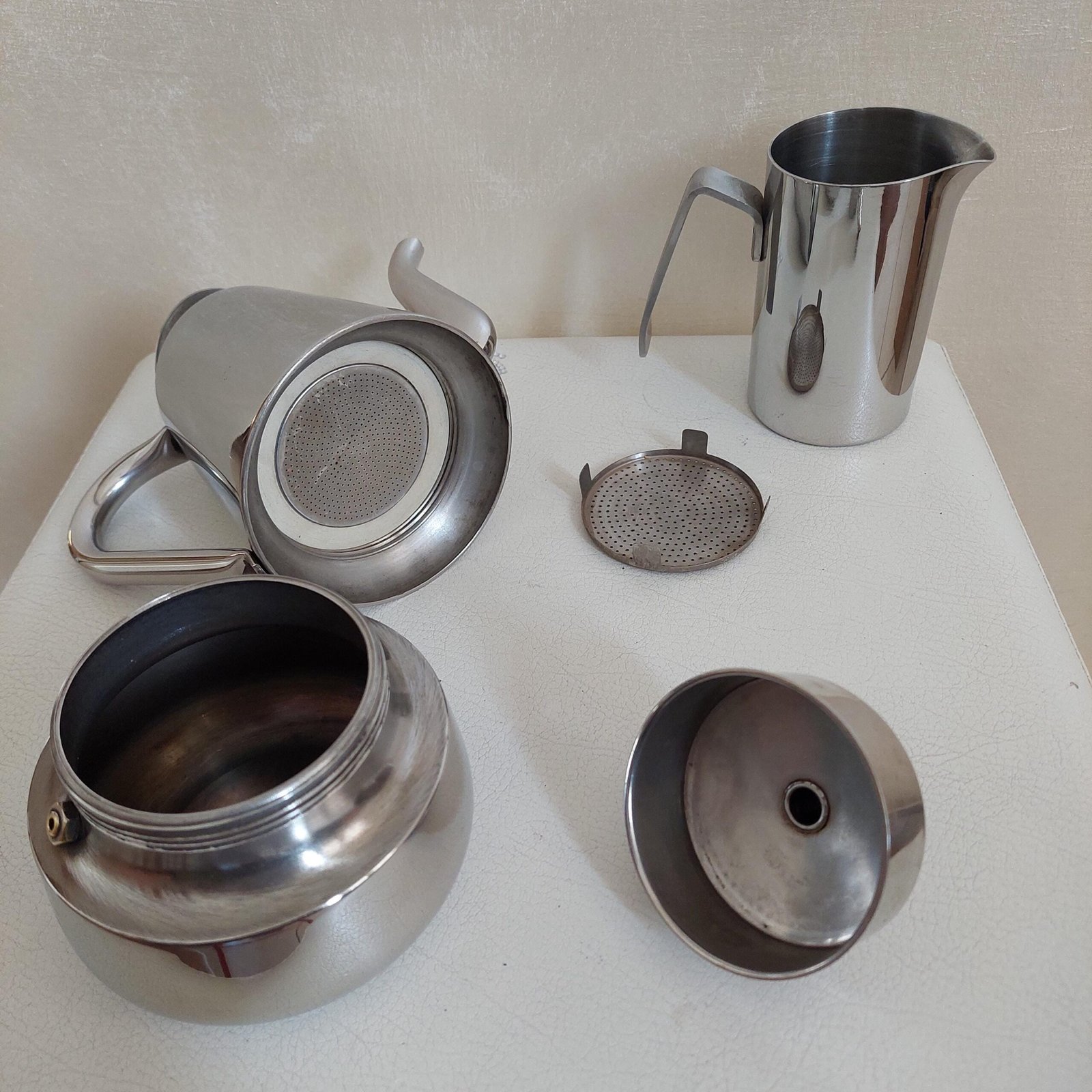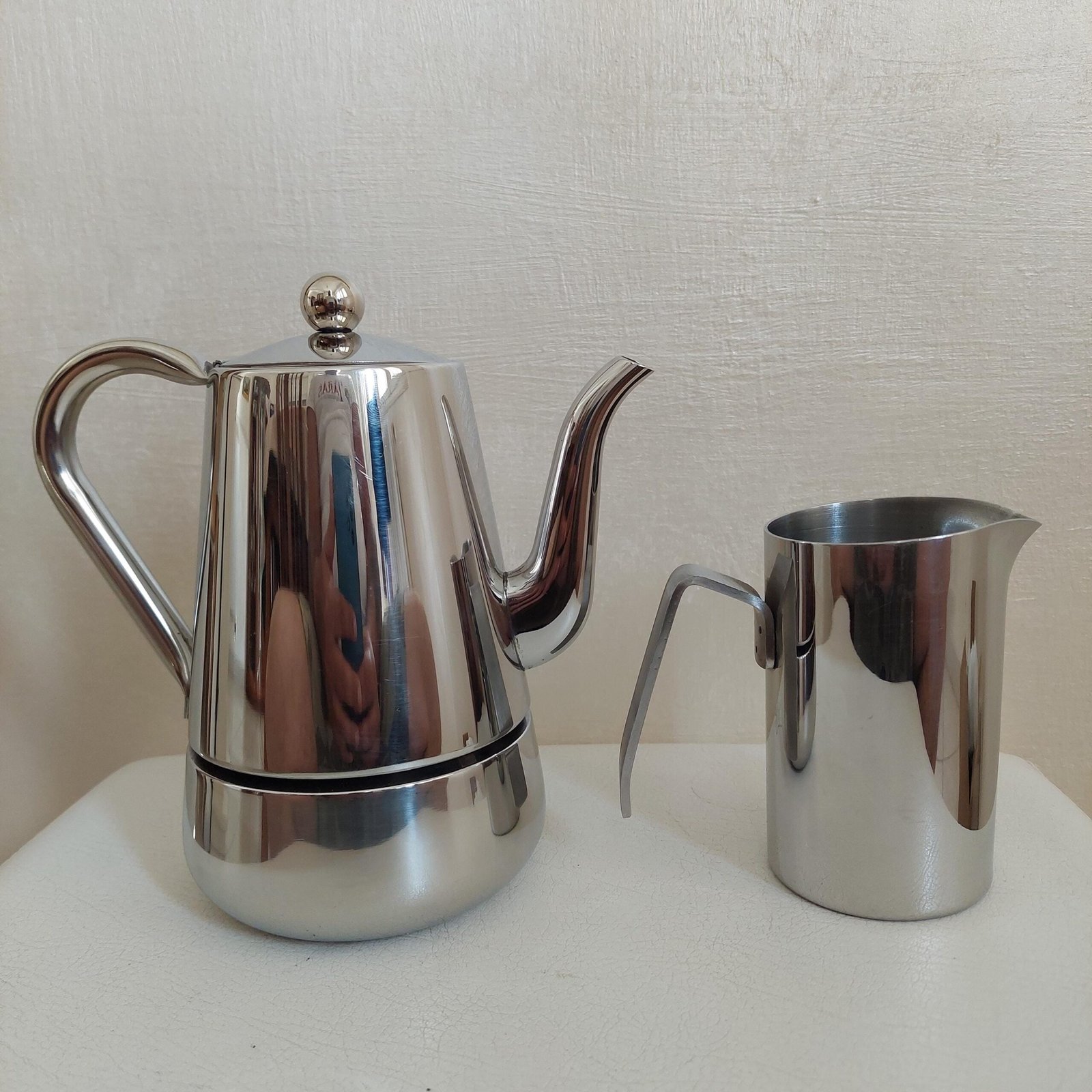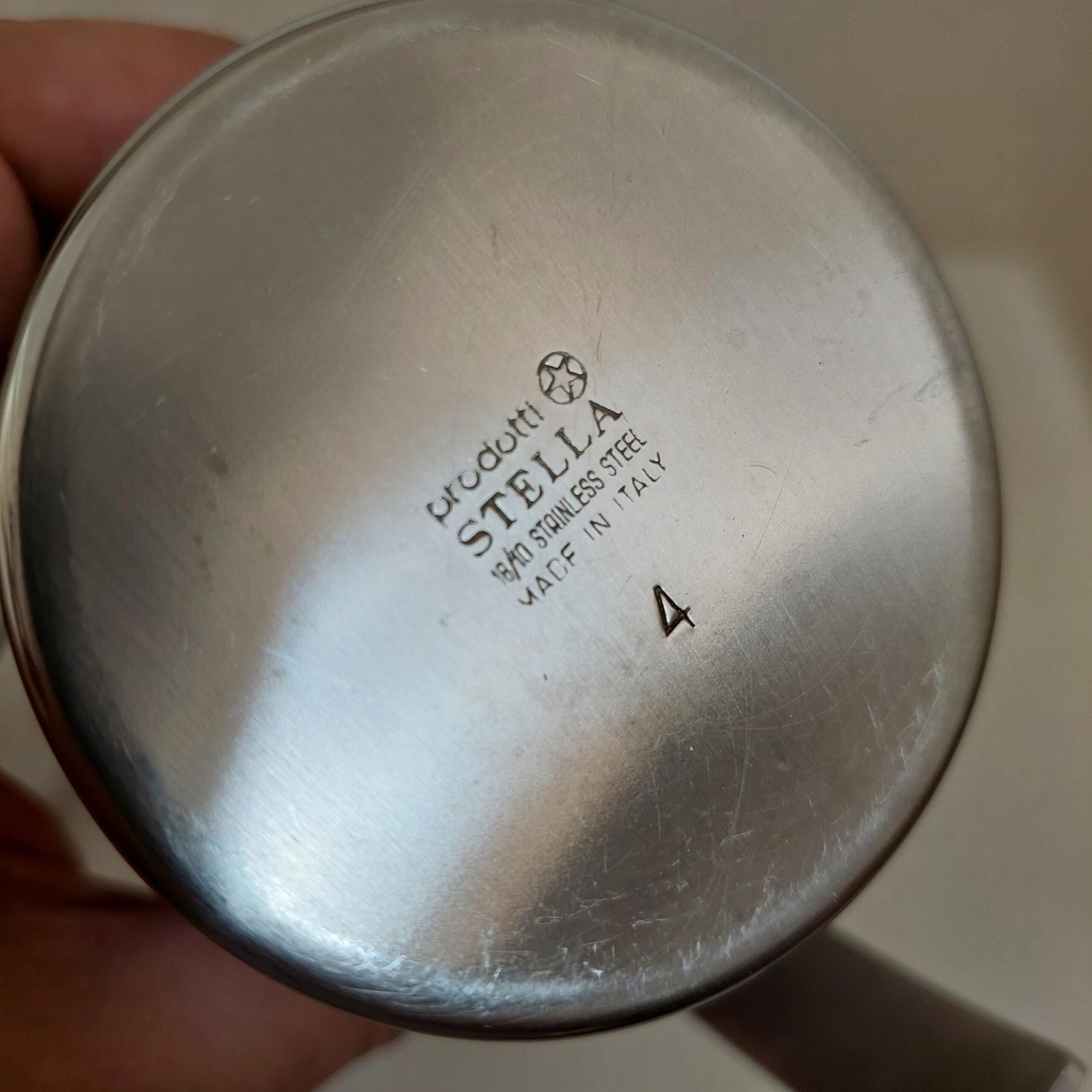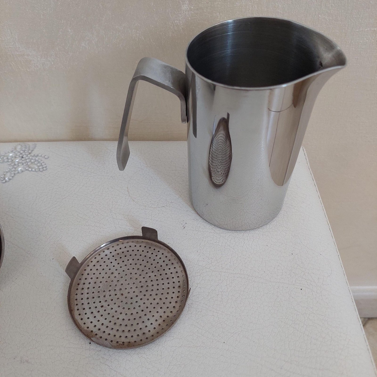 Vintage Stella Moka Pot: Italian Stainless Steel Coffee Maker with Milk Jug.